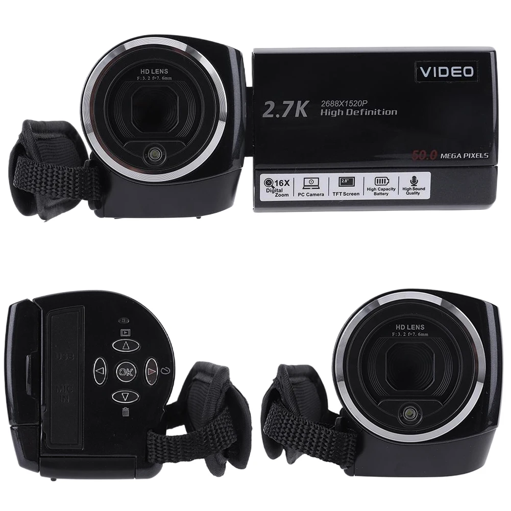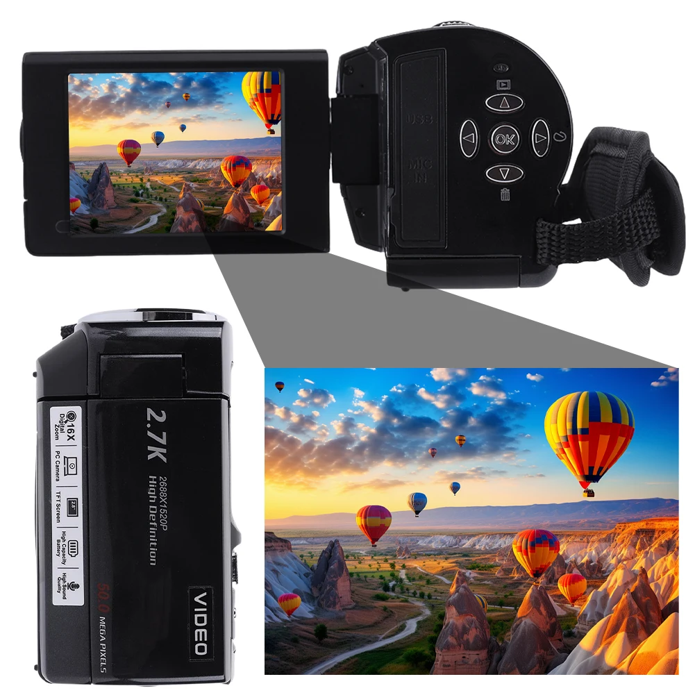 Videocámara 2.7K 50MP 16X Zoom digital Videocámara Pantalla de rotación de 2.8 pulgadas 270 grados Cámara de video digital Cámara de vlogging para grabación de viajes al aire libre