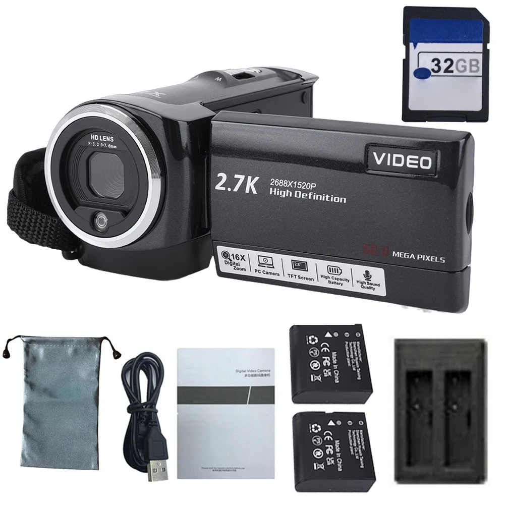 Característica:1. Videocámara con cámara de vídeo de alta calidad:Capture impresionantes videos QHD 2.7K y fotografías de 50MP con esta videocámara avanzada.Cuenta con una pantalla giratoria de 2,8 pulgadas/270 grados y un zoom digital de 16x, compatible con una tarjeta de almacenamiento de alta velocidad de 32 GB, ampliable hasta 128 GB.Perfecto para viajes, reuniones, aprendizaje y momentos inolvidables.