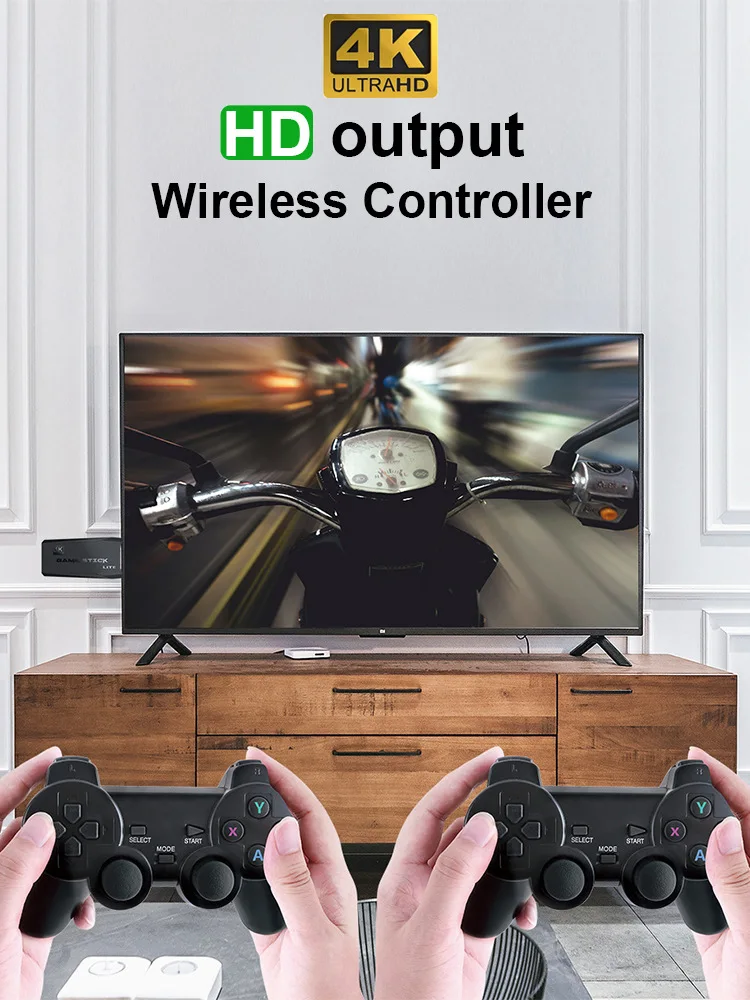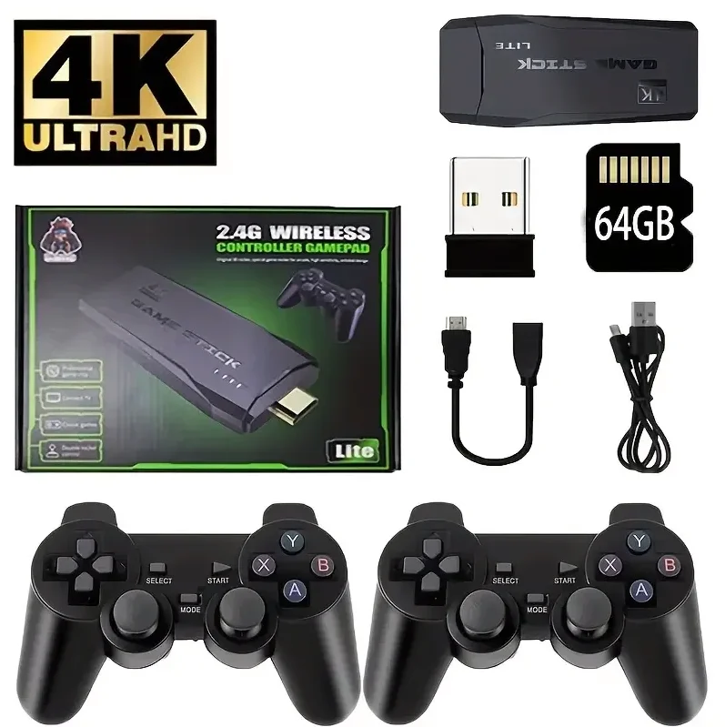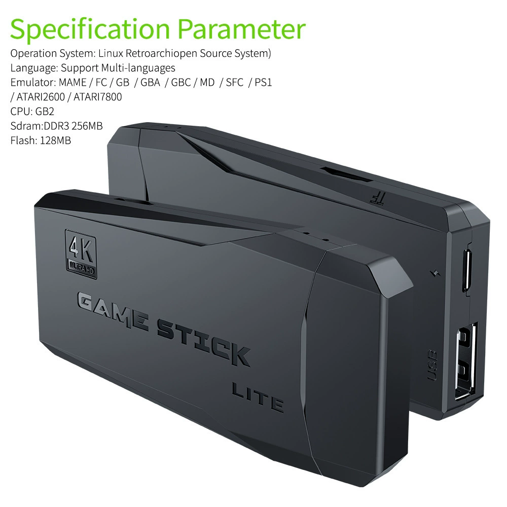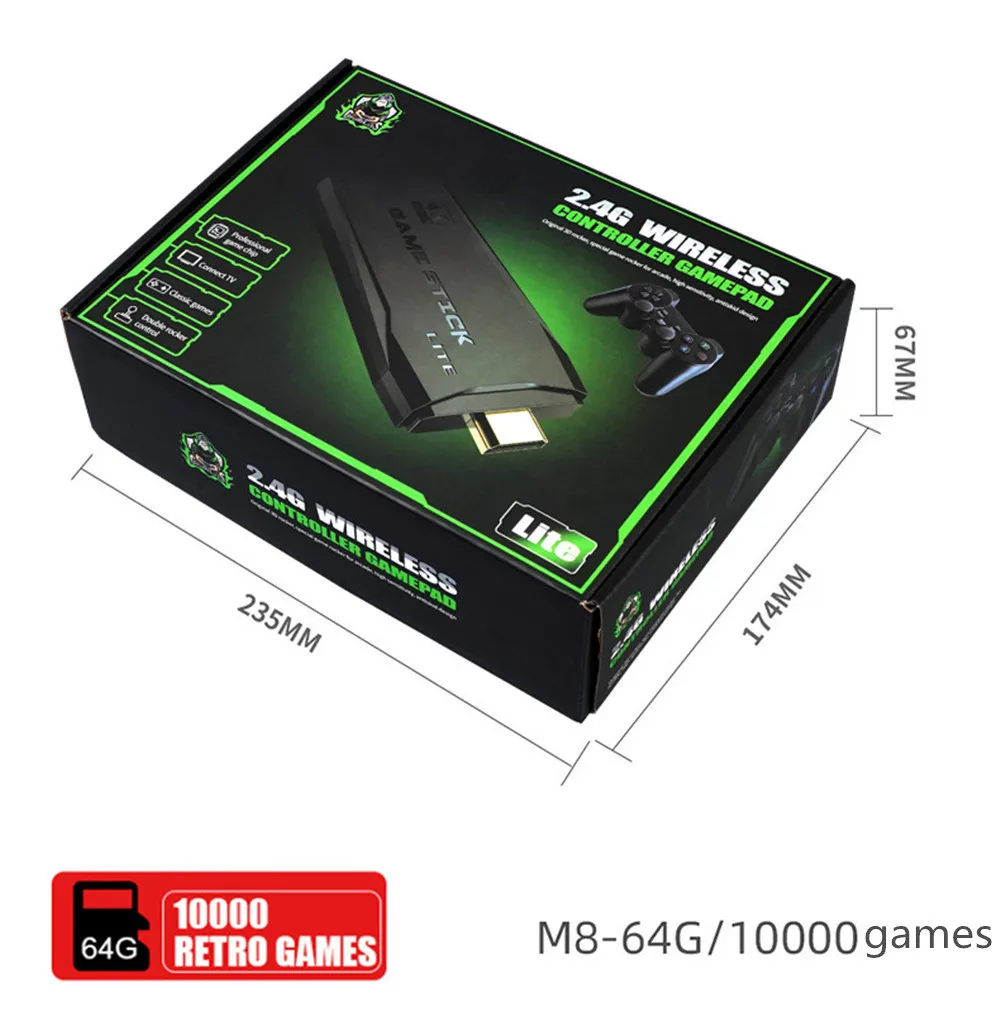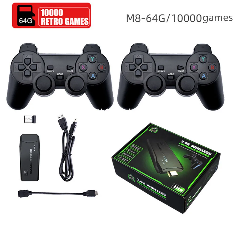 Comprar Videojuego Stick Lite 4K, consola M8, 64GB, doble controlador inalámbrico para 20000 juegos Retro, regalo de Navidad para niños, 4K HDMI