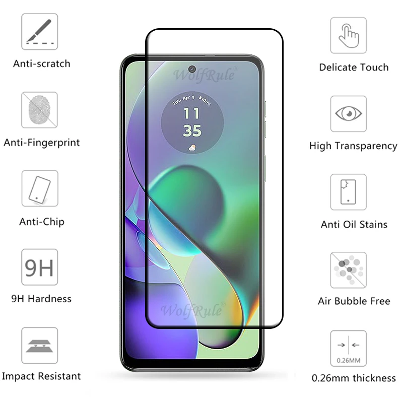Comprar Vidrio 6 en 1 para Moto G54 para Motorola Moto G54, vidrio templado, pegamento de cubierta completa, Protector de pantalla 9H para lente de Moto G54 G 54