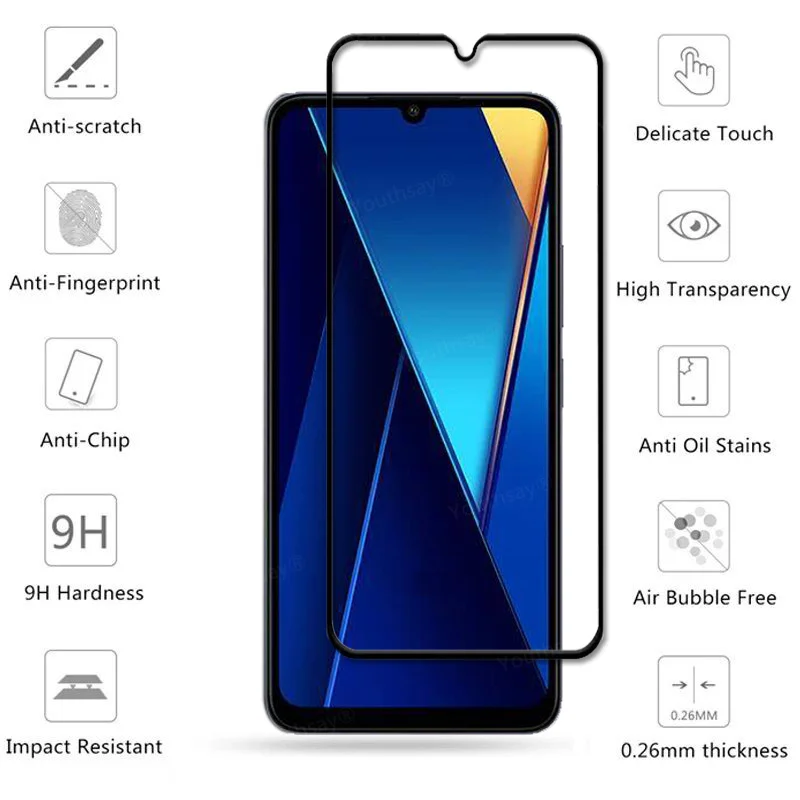 Comprar Vidrio 6 en 1 para Poco C65, cubierta completa de vidrio templado para Poco C65, Protector de pantalla 9H, película protectora para lente de cámara de teléfono, Poco C65