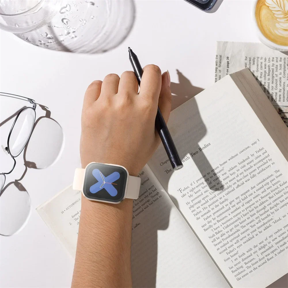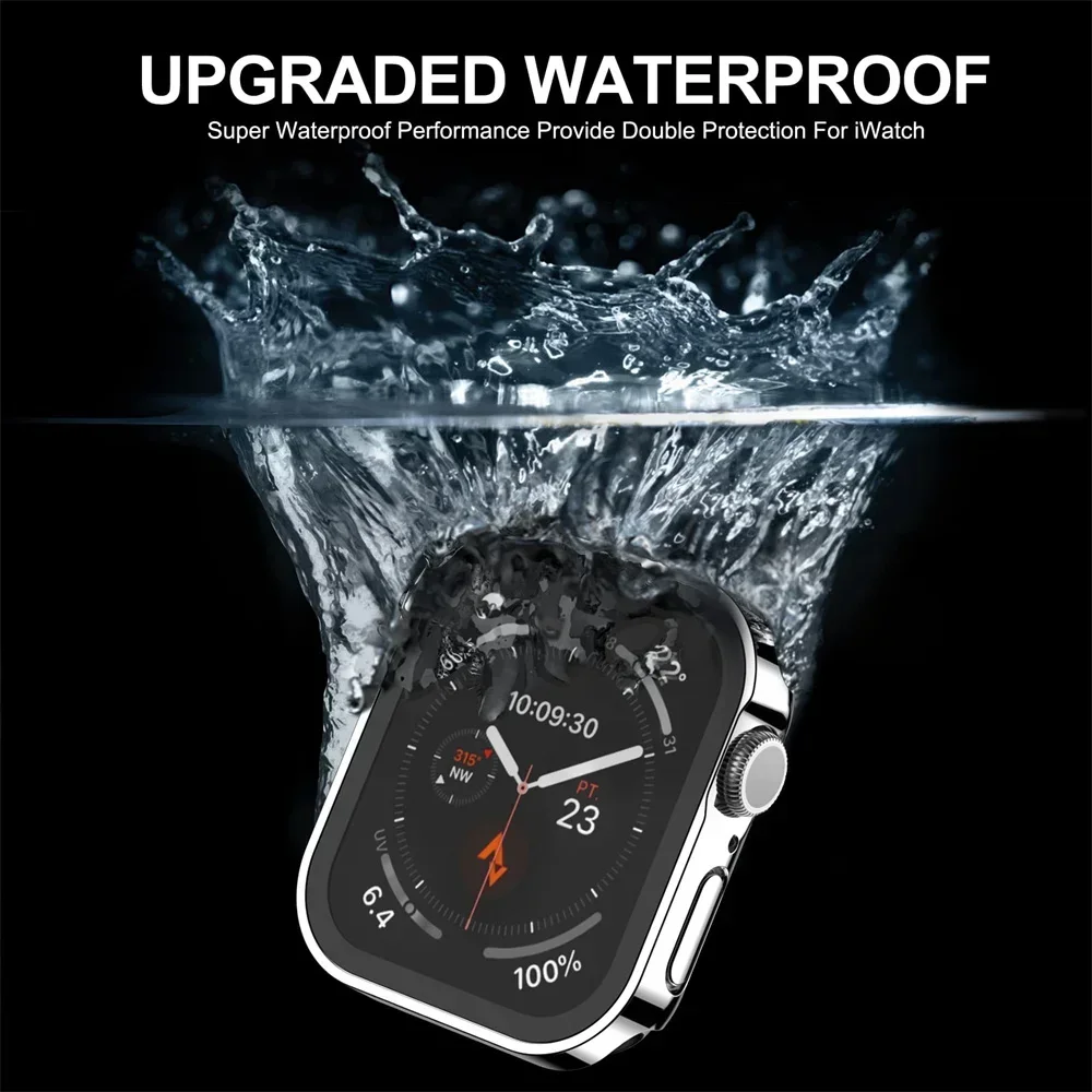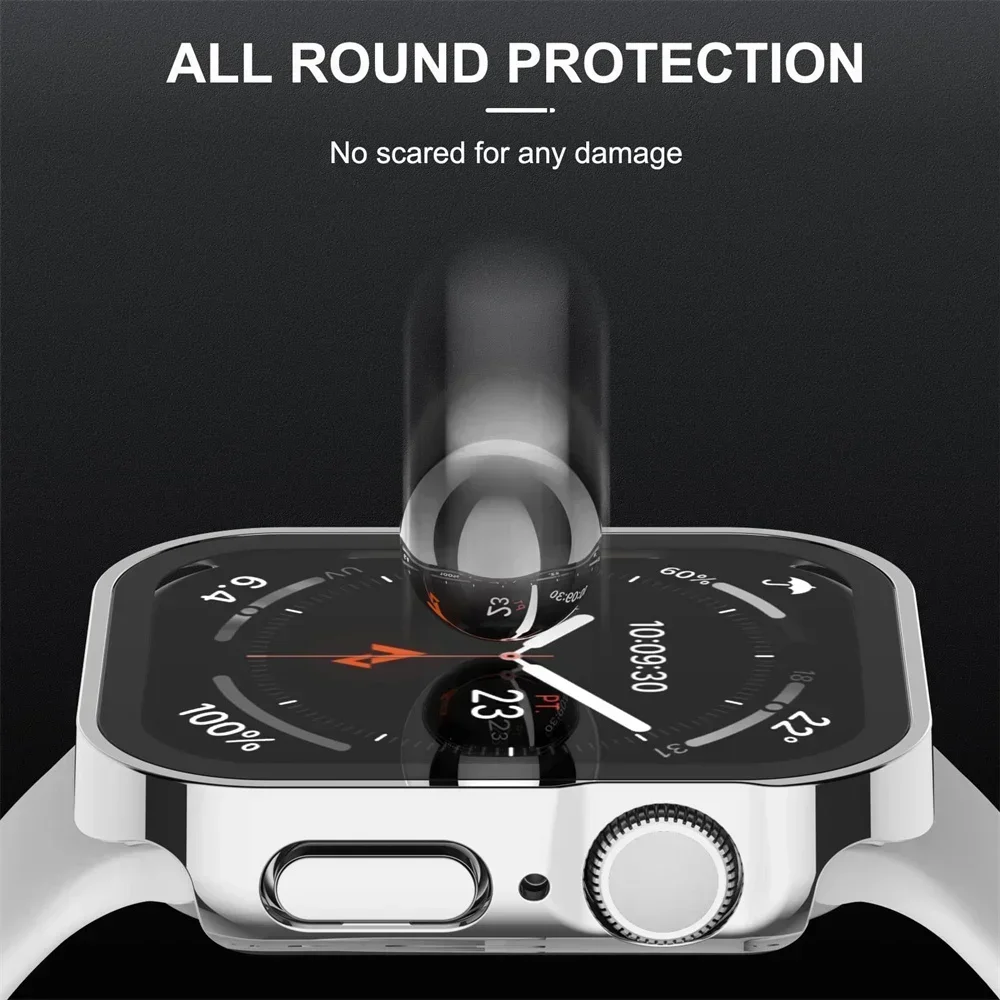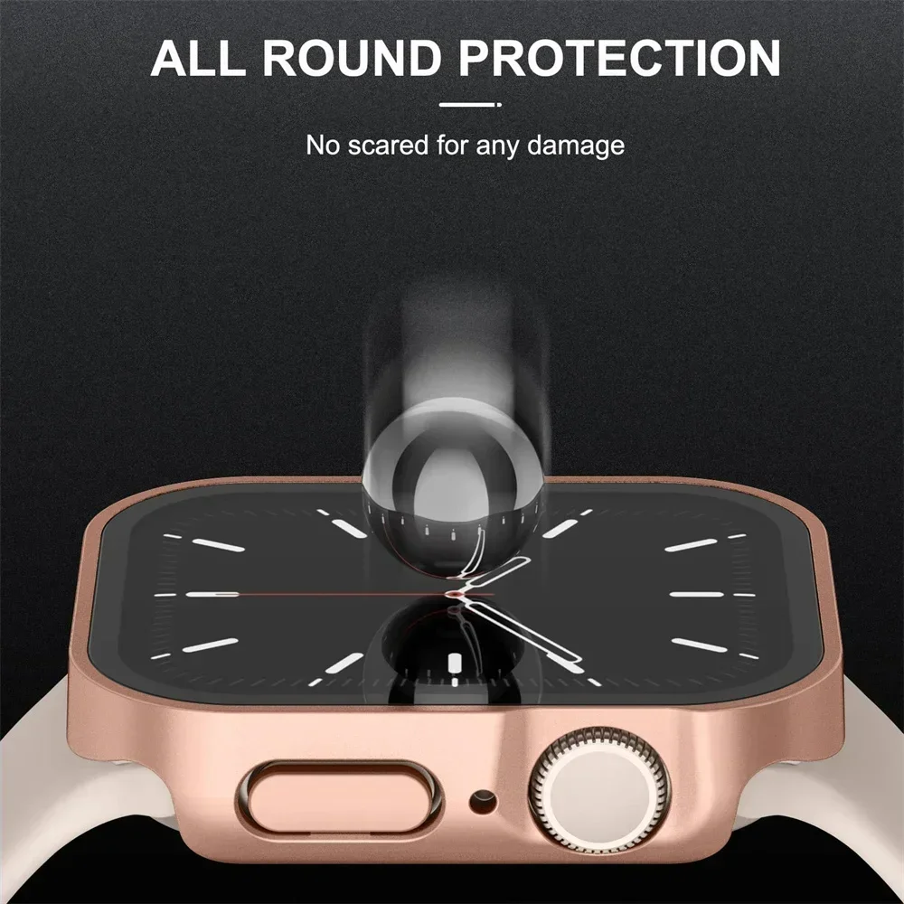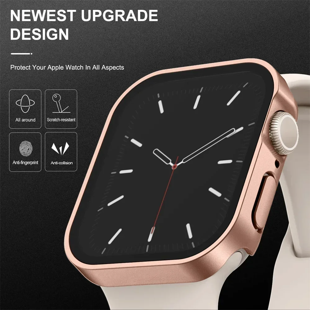 Vidrio templado + cubierta para Apple Watch 8 44mm 40mm 42mm 38mm PC borde recto parachoques Protector de pantalla funda iWatch series 7 6 5 3 se 41mm 45mm
