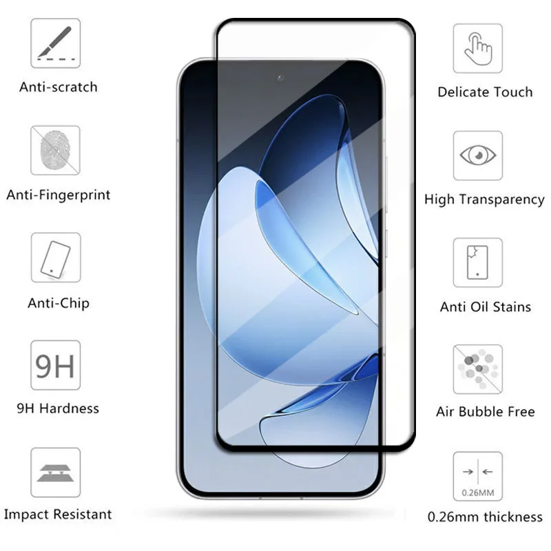 Comprar Vidrio de cubierta completa 6 en 1 para OPPO Reno13 5G vidrio templado Reno 13 Protector de pantalla película protectora de lente de cámara de teléfono OPPO Reno13