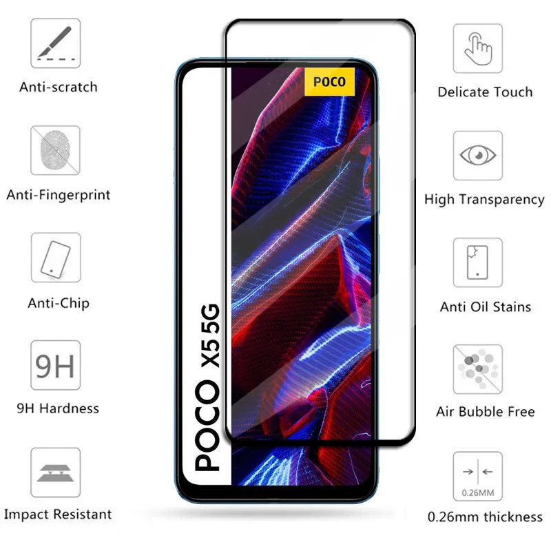 Vidrio de cubierta completa para Poco X5 5G, vidrio templado para Xiaomi Poco X5, Protector de pantalla, película protectora de lente de teléfono, vidrio Poco X5 6,67