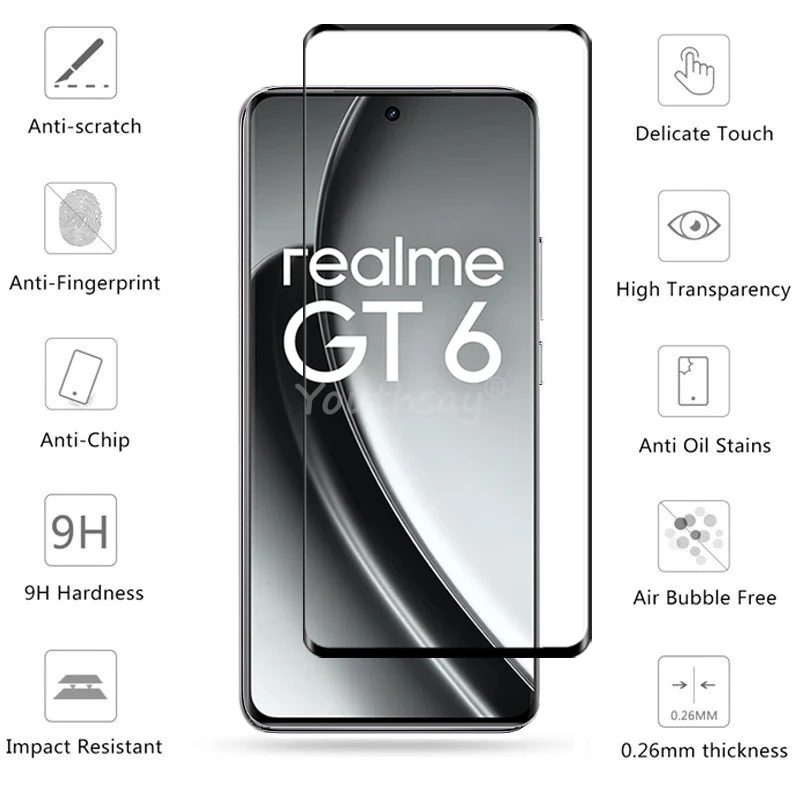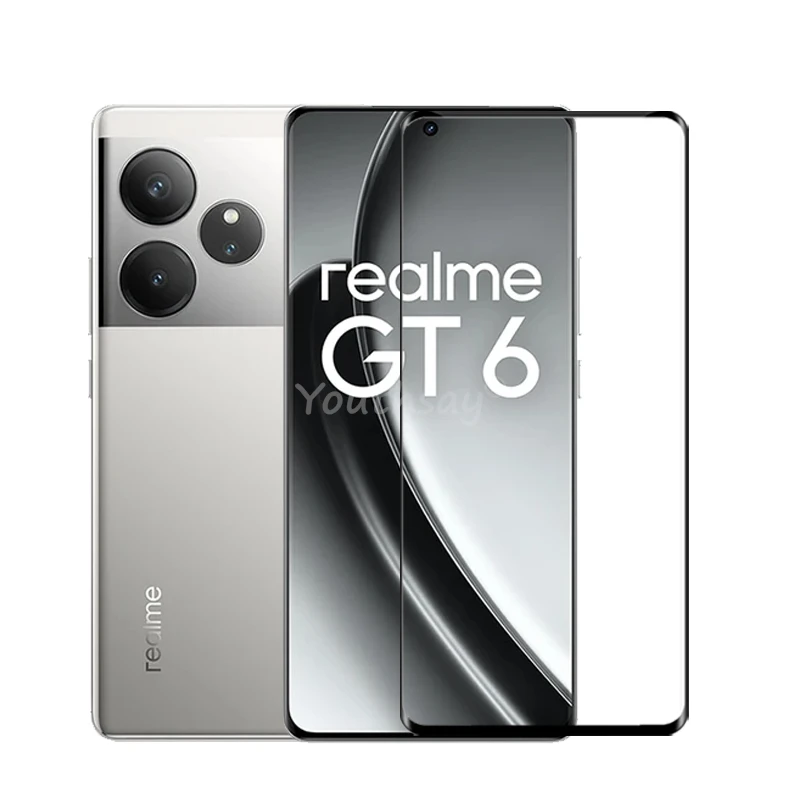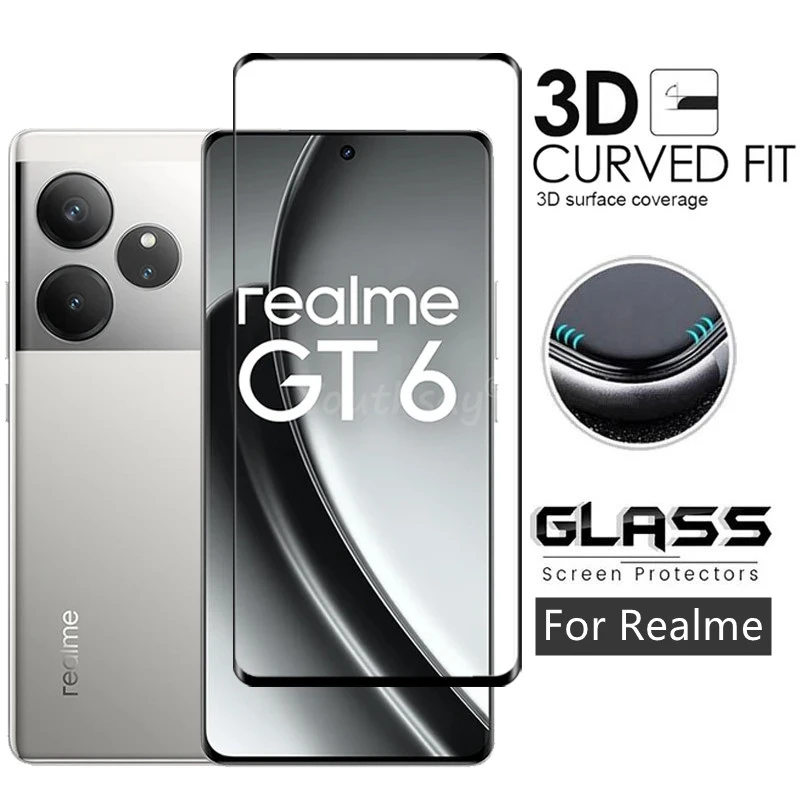 Comprar Vidrio de cubierta completa para Realme GT 6, vidrio templado, Protector de pantalla Realme GT6, película protectora de teléfono para Realme GT 6