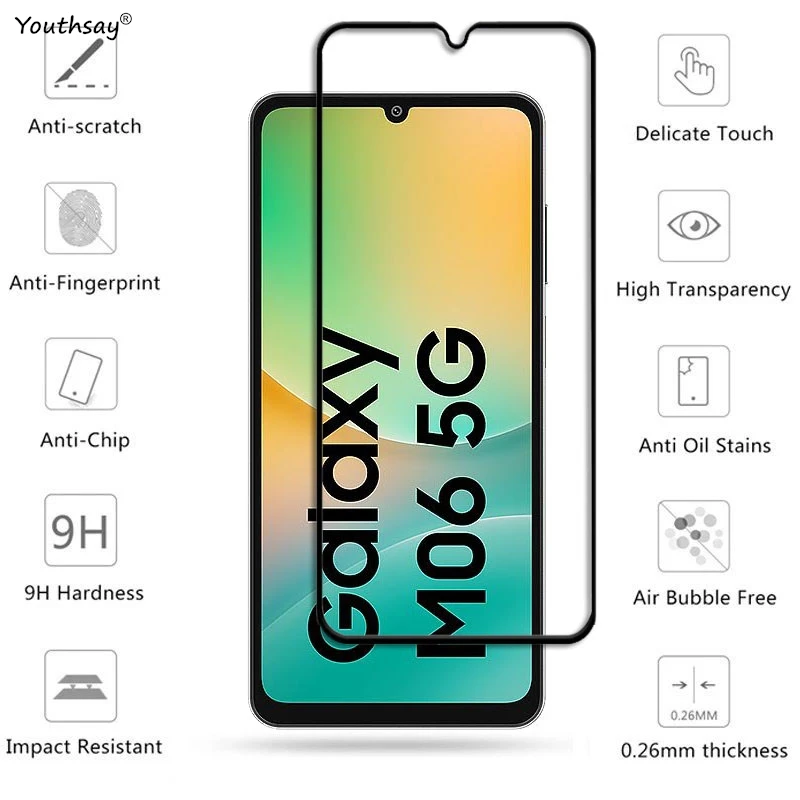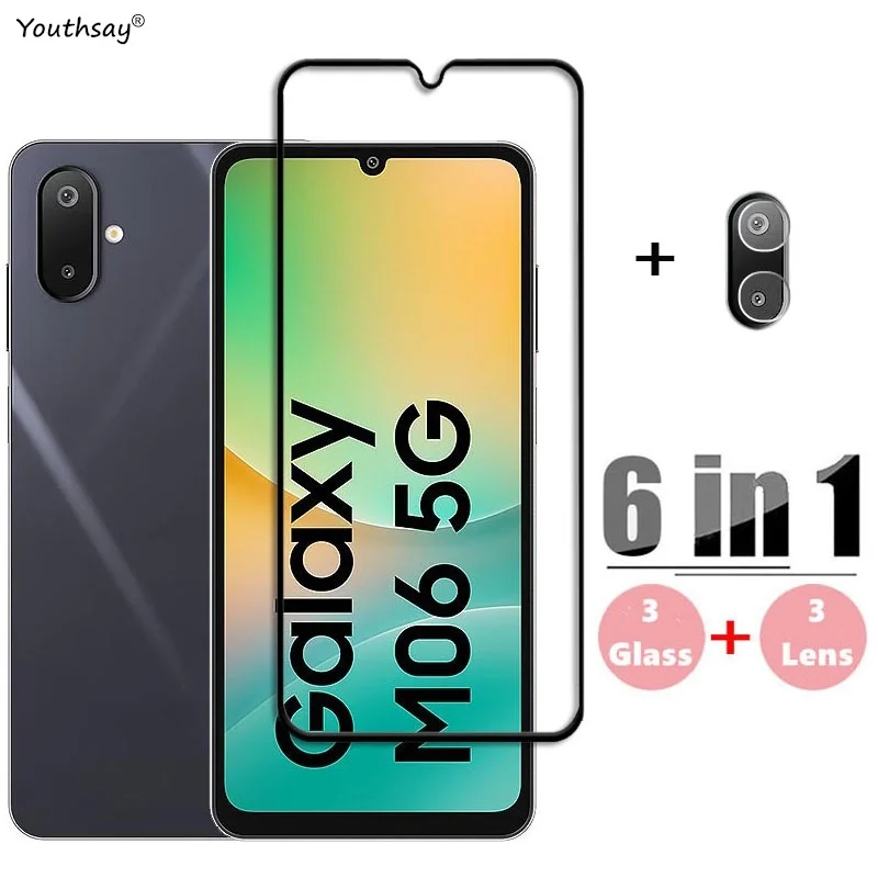 Vidrio de cubierta completa para Samsung Galaxy M06 vidrio templado Samsung Galaxy M06 Protector de pantalla HD película de lente de teléfono Samsung Galaxy M06