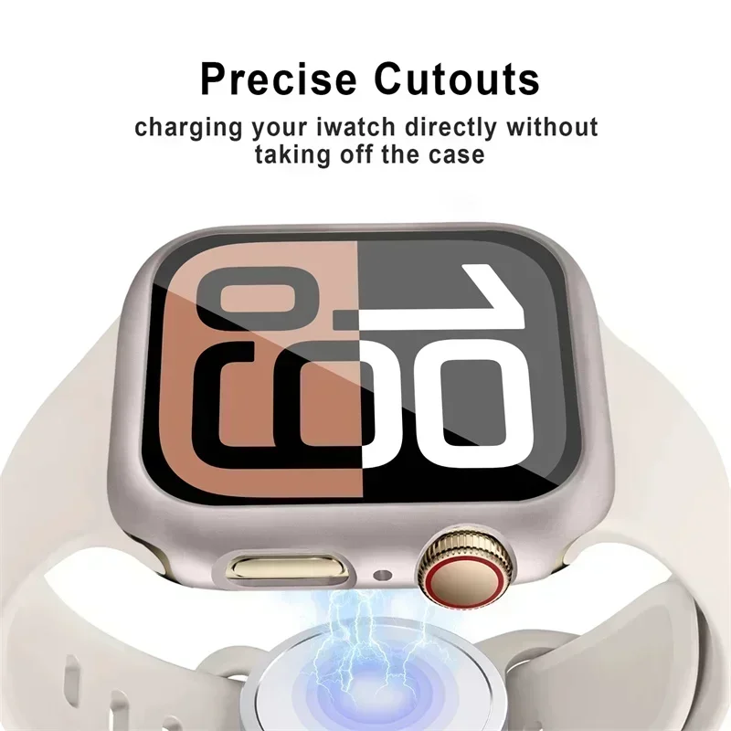 Vidrio + cubierta para Apple Watch funda 46mm 44mm 40mm 45mm 41mm 42mm 38mm Protector de pantalla iwatch series 10 9 7 6 5 3 SE Accesorios