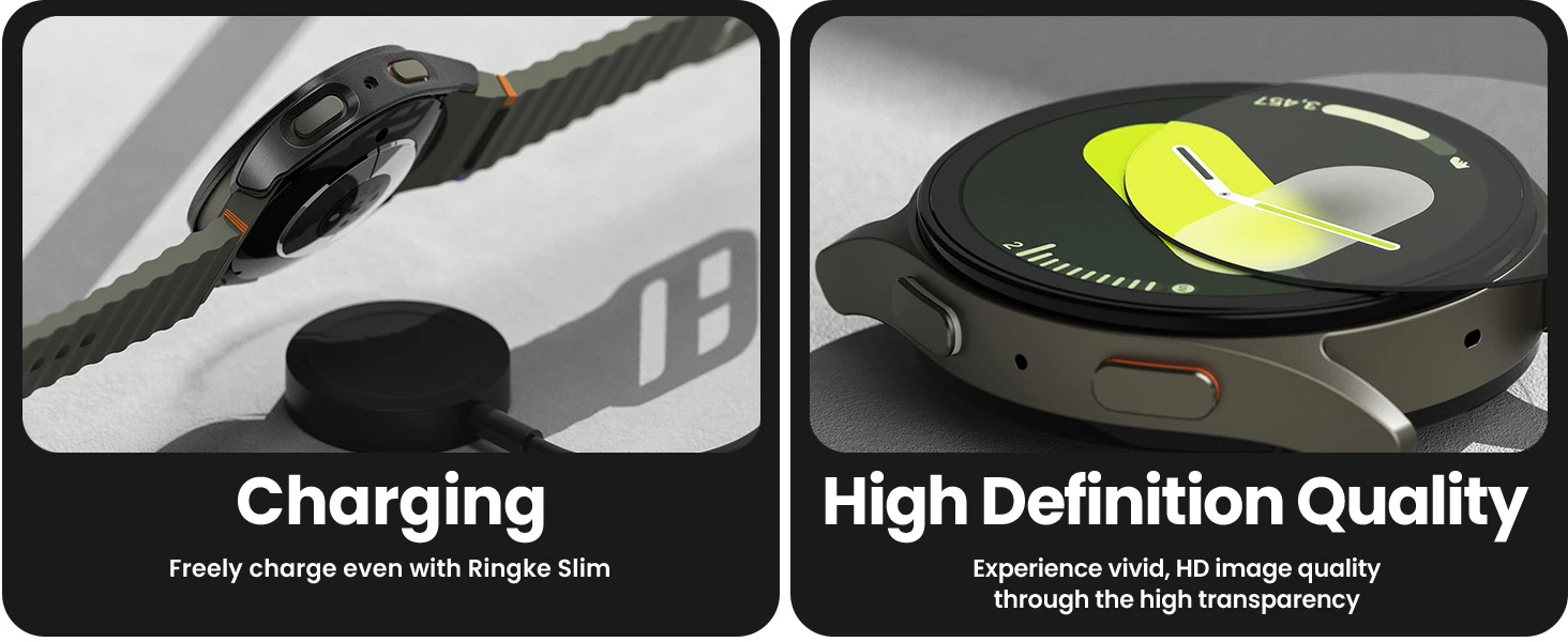 Puedes instalar perfectamente la funda protectora en tu Samsung Galaxy Watch 7 sin necesidad de experiencia.Es conveniente instalar, quitar y cargar directamente.