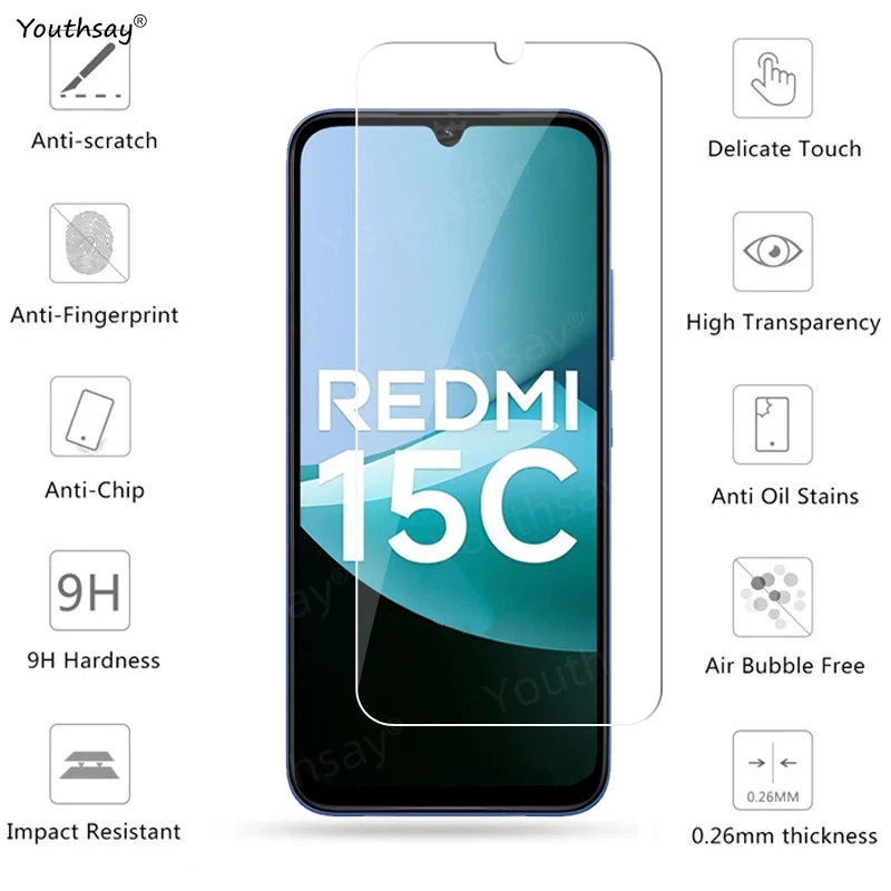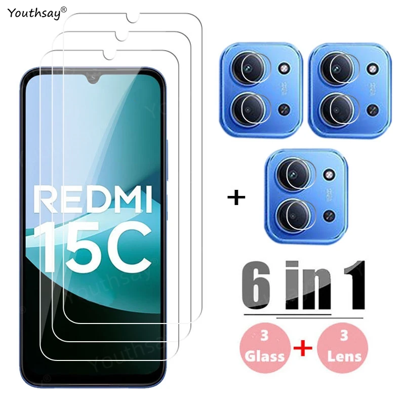 Comprar Vidrio Gule completo 6 en 1 para Xiaomi Redmi 15C vidrio templado Redmi 15C Protector de pantalla película protectora de lente de cámara de teléfono Redmi 15C