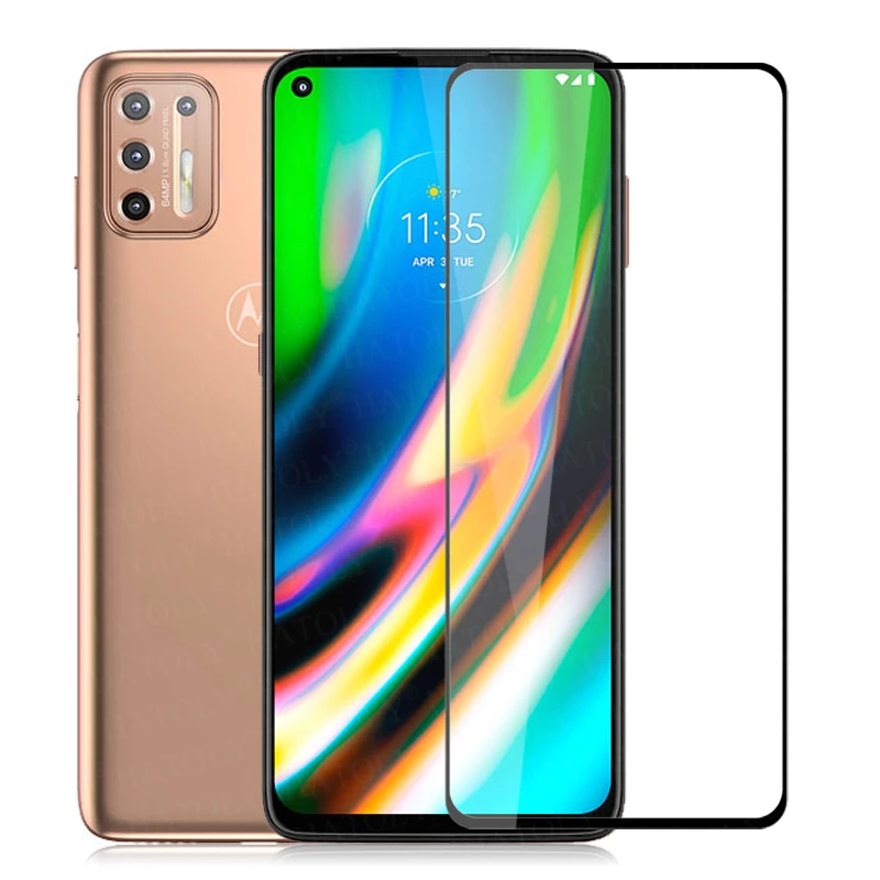 Comprar Vidrio en Moto G9 Plus vidrio templado para Motorola Moto G9 Plus Play HD Protector de pantalla cubierta de pegamento completo película de teléfono Moto G9 Plus