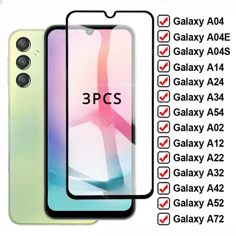Vidrio de protección completa para Samsung A04, A14, A24, A34, A54, Protector de pantalla para Samsung A02, A12, A22, A32, A42, A52, A72, película de cristal, 3 piezas