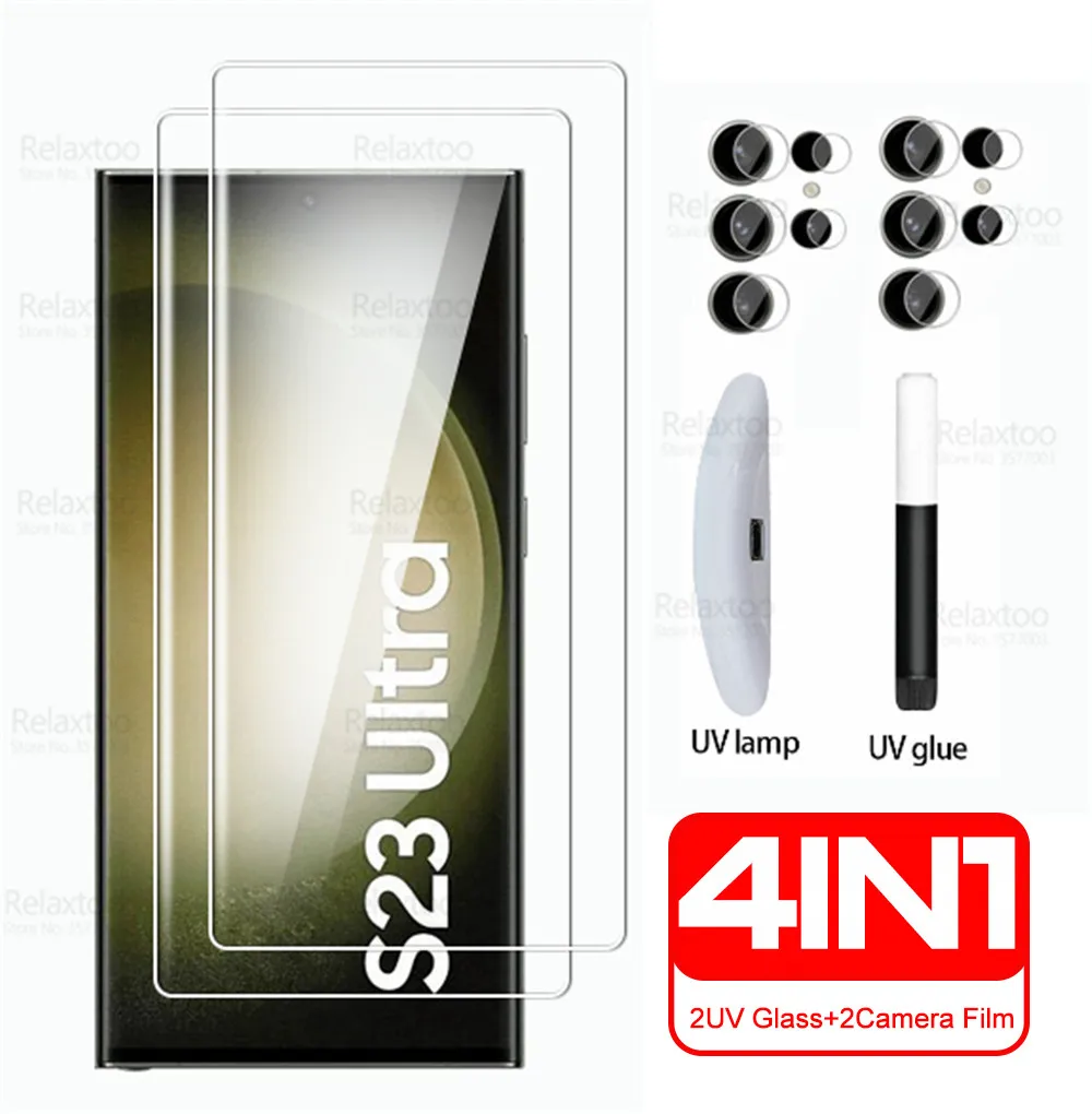 Para Samsung Galaxy S23 Ultra UV vidrio 4 en 1 cámara vidrio protector SamsungS23 S 23 Plus S23Ultra 5G S23 + películas protectoras de pantalla
