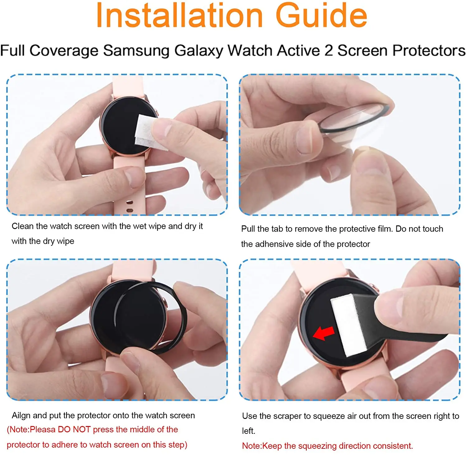 Comprar Vidrio protector de pantalla de borde curvo 20D para Samsung galaxy Watch Active 2 4, película protectora de vidrio templado de 40mm y 44mm, 1/2/3 Uds.