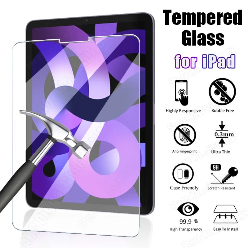 Vidrio protector para iPad 5th 6th 7th 8th 9th Vidrio templado 9,7 10,2 10,9 Protector de pantalla de 11 pulgadas para iPad 11 Pro Air 4 5