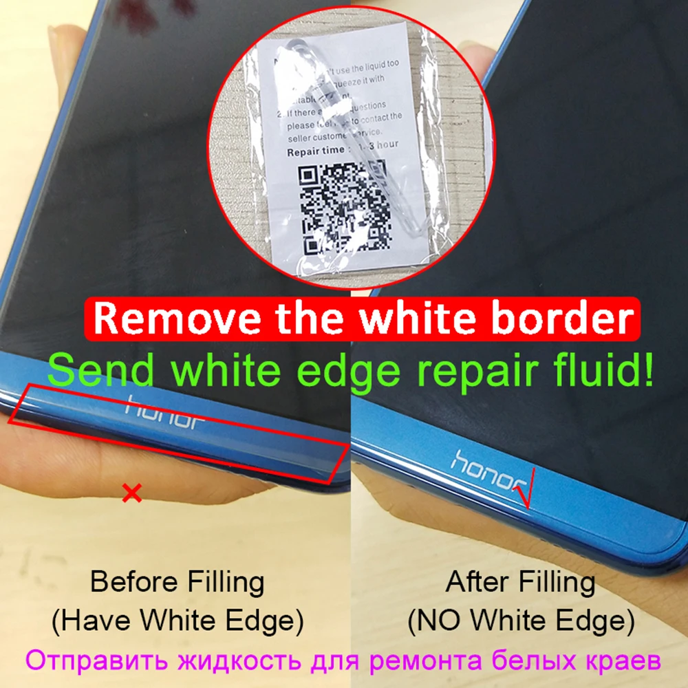Nota: Si hay bordes blancos después de pegar, utilice líquido de reparación de bordes blancos. Llene el líquido hasta el lugar donde no esté completamente ajustado.