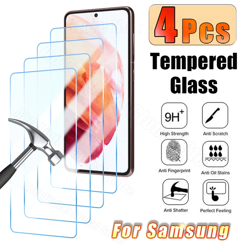 4 Uds vidrio protector para Samsung Galaxy A54 A14 A34 A24 A12 A51 A52 A50 A71 A72 A70 A31 A21S A22 A32 A13 A33 A53 A73 A52S S21 FE S20 FE 5G Protector de pantalla para Samsung S22 S23 S24 vidrio templado Plus