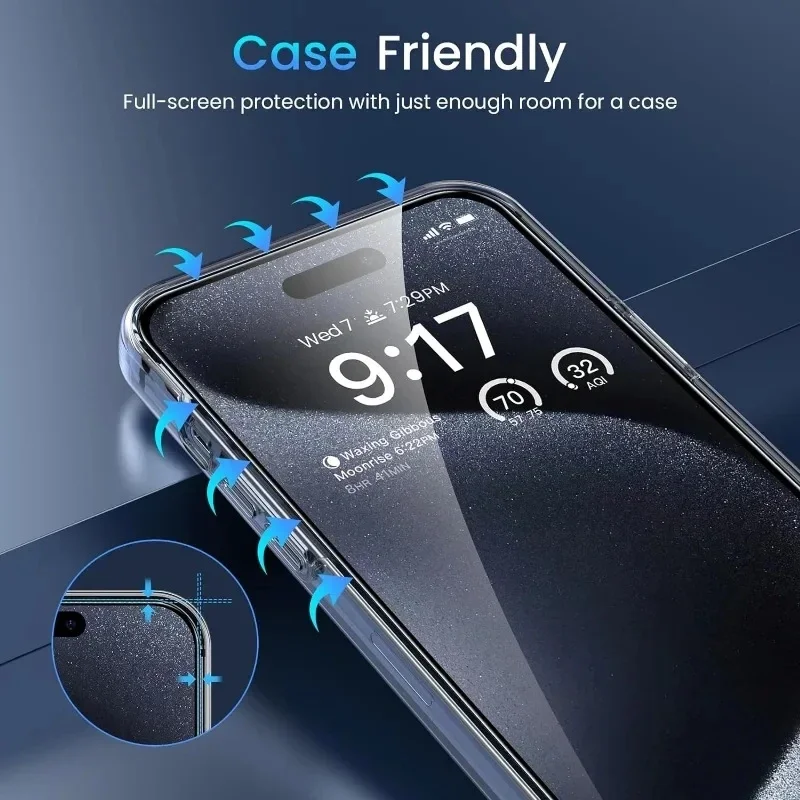 Comprar Vidrio templado 3 en 1 para iPhone 15 11 12 13 14 Pro Max Mini 8 Plus funda de teléfono transparente para iPhone XS MAX X XR SE protectores de pantalla