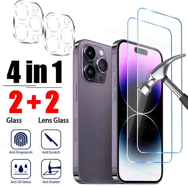 Vidrio templado 4 en 1 para iPhone 15 14 13 12 11 Pro Max 13 12 Mini Protector de lente de cámara para iPhone XR X XS Max 14 15 Plus Glass