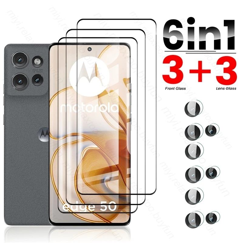 6 En 1 9H vidrio templado para Motorola Edge 50 5G 2024 Protector de pantalla curvo en Moto Rola Edge50 Motorolaedge50 5G vidrio de cámara