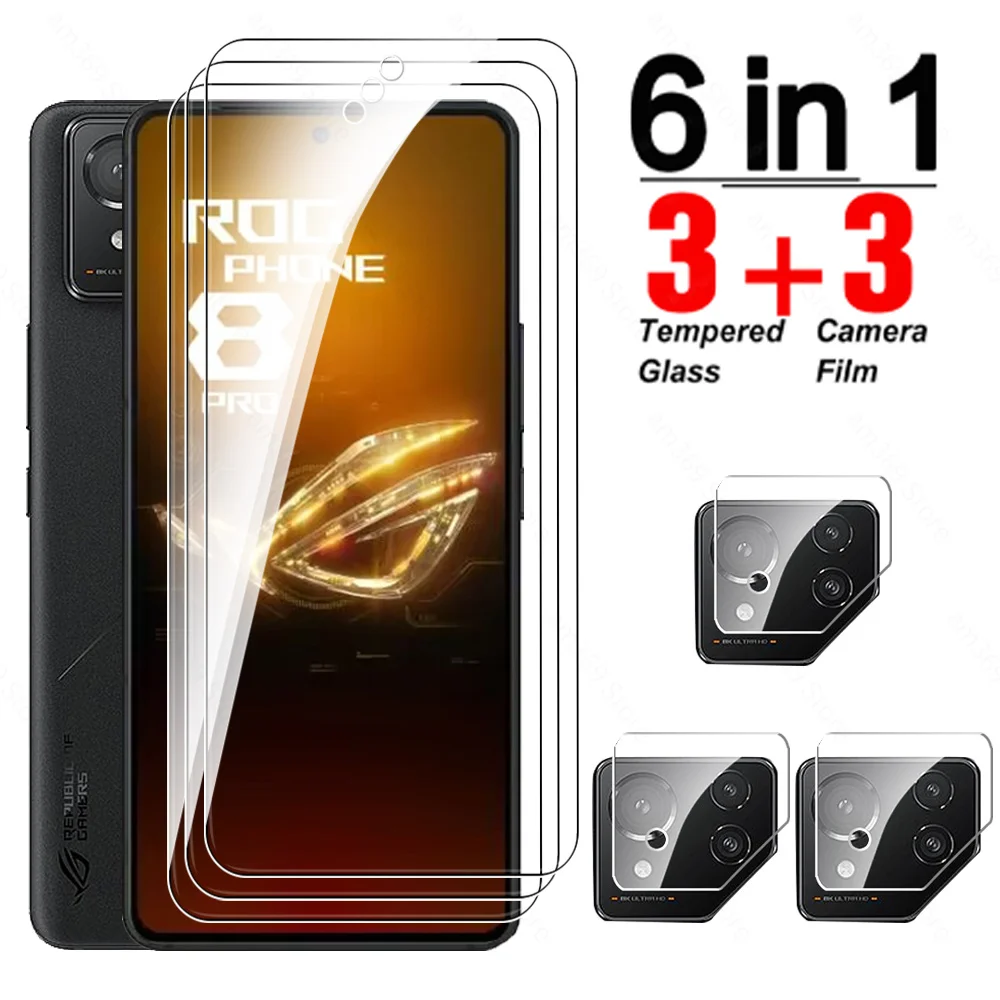 6-En-1 de vidrio templado para Asus ROG Phone 8 Pro 5G Protector de pantalla cubierta completa lente película RogPhone 8Pro Phone8 Phone8Pro RogPhone8
