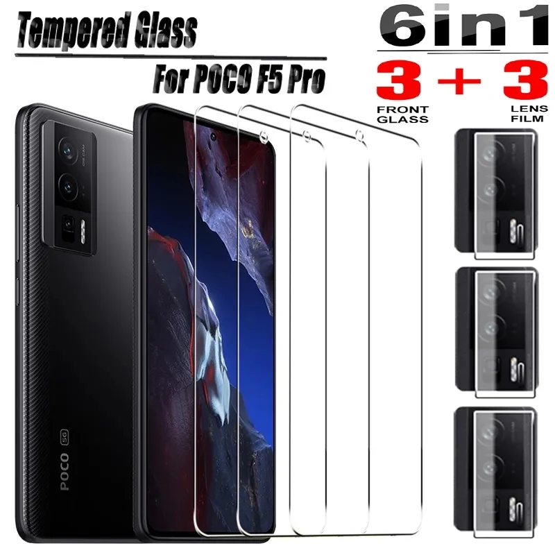 Vidrio Templado 6 en 1 para Xiaomi, Protector de pantalla para Poco F5 Pro, C40, F3, F4, X4, GT, M5, M5S, Mi Poco X3, F2, M3, M4, X4, X5 Pro, película de lente