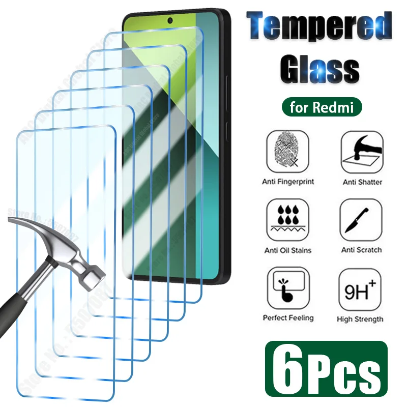 Comprar Vidrio templado de 6 piezas para Redmi Note 13, 12, 11, 10, 9, 8 Pro Plus, 5G, 12S, 11S, 10S, 9S, 9T, 8T, Protector de pantalla para Redmi 12C, 10C, 9C, 9A, 7