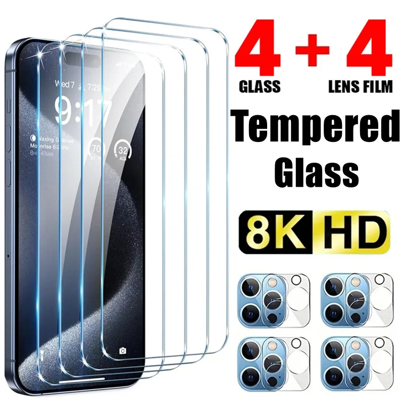 Comprar Vidrio templado 8 en 1 para iPhone 16 15 14 13 12 11 Pro Max Mini Plus Protector de pantalla para iPhone Cámara Vidrio Antirotura