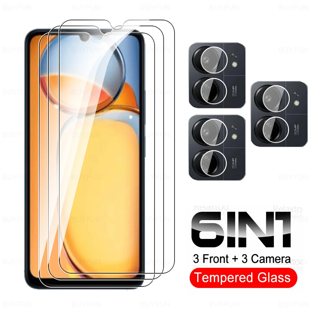 Para Redmi 13C Glass 6in1 Cámara de vidrio templado para Xiaomi Redmi13C Redmy 13 C C13 4G 6,74 ''película protectora de pantalla Premium