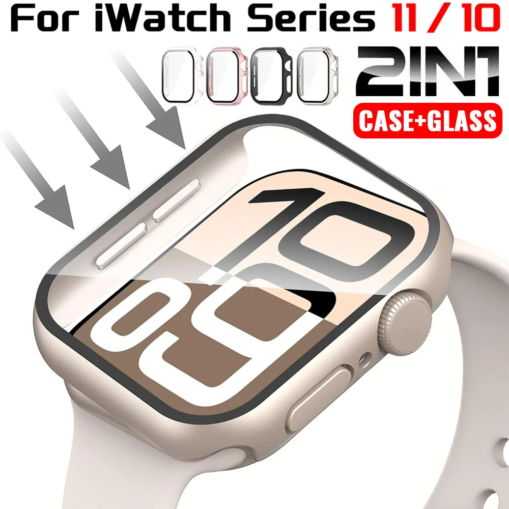 Vidrio templado + cubierta para Apple Watch Series 11 10 42mm 46mm Protector de pantalla para reloj inteligente funda protectora de PC dura para iWatch S 11