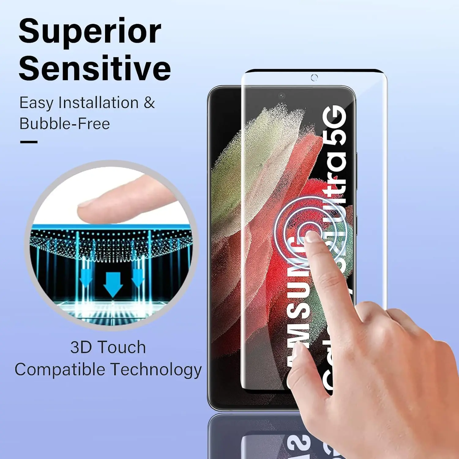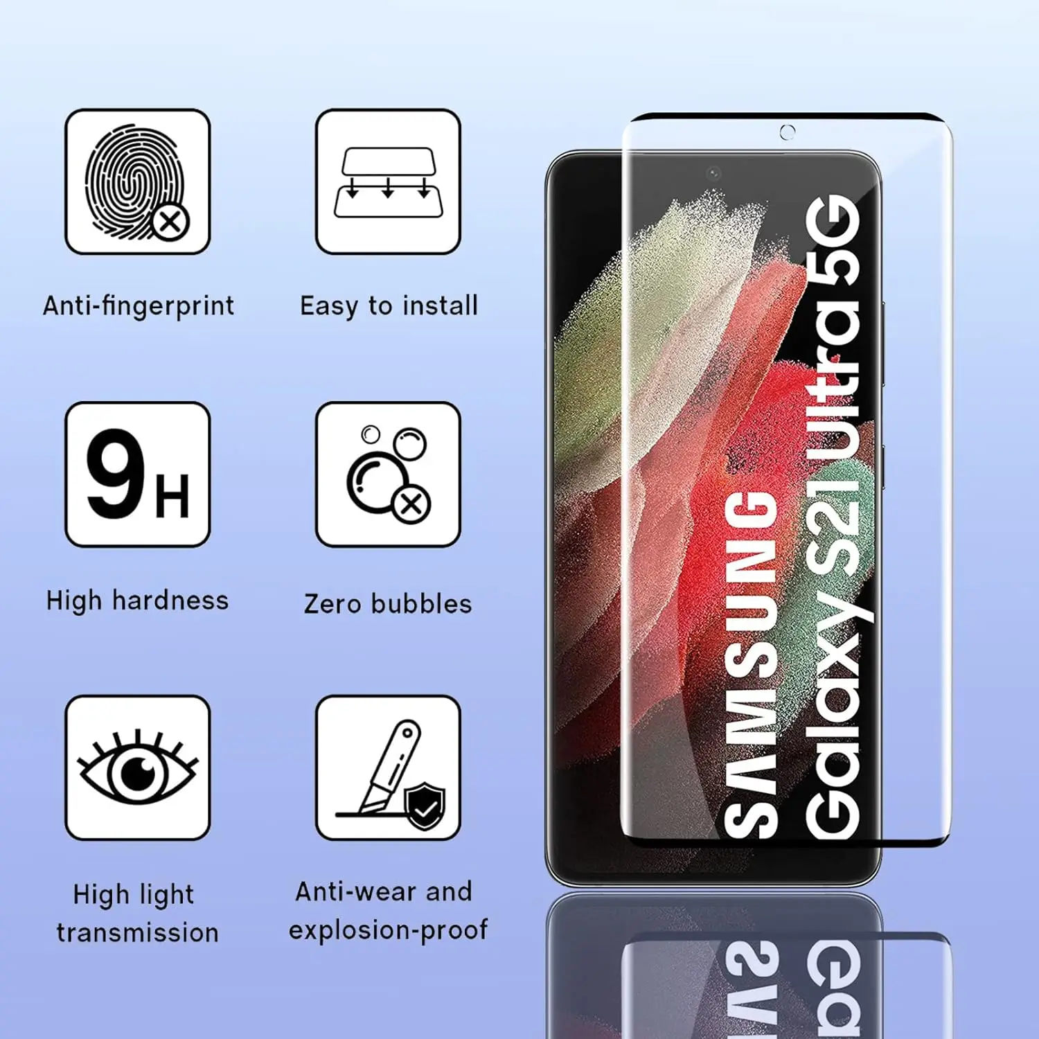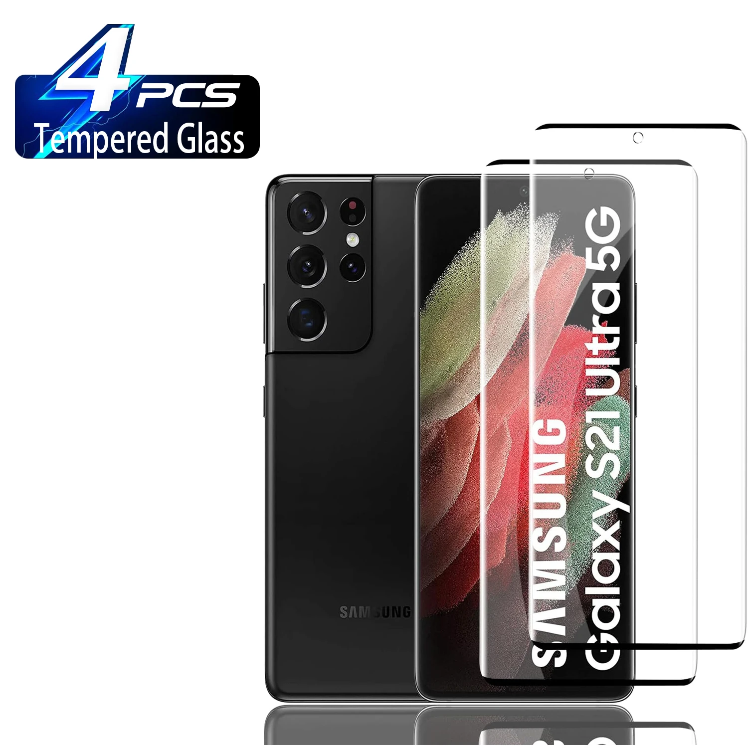 Comprar Vidrio templado curvo ultrasónico para Samsung Galaxy S21 Ultra S20 Ultra Plus, Protector de pantalla, 2/4 Uds.