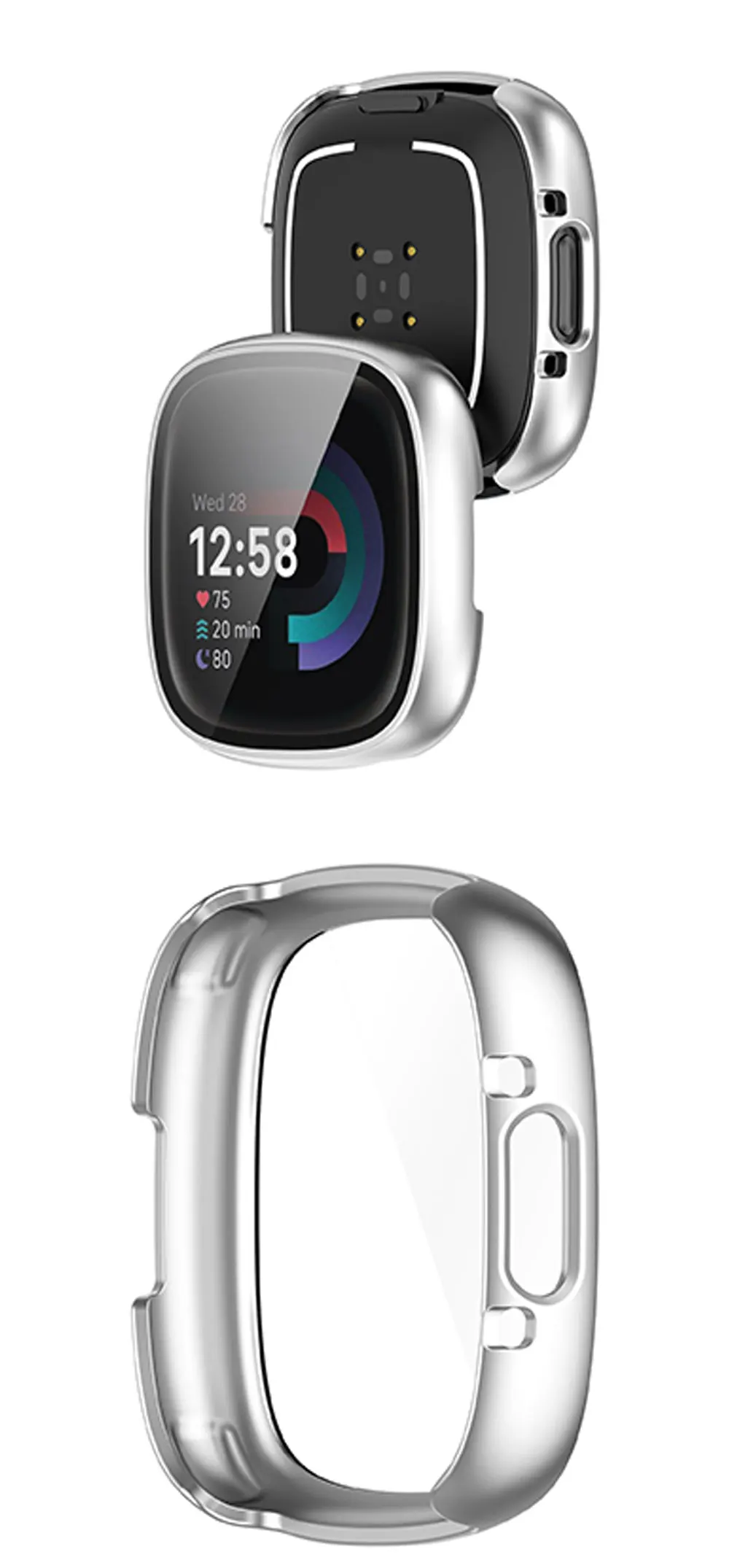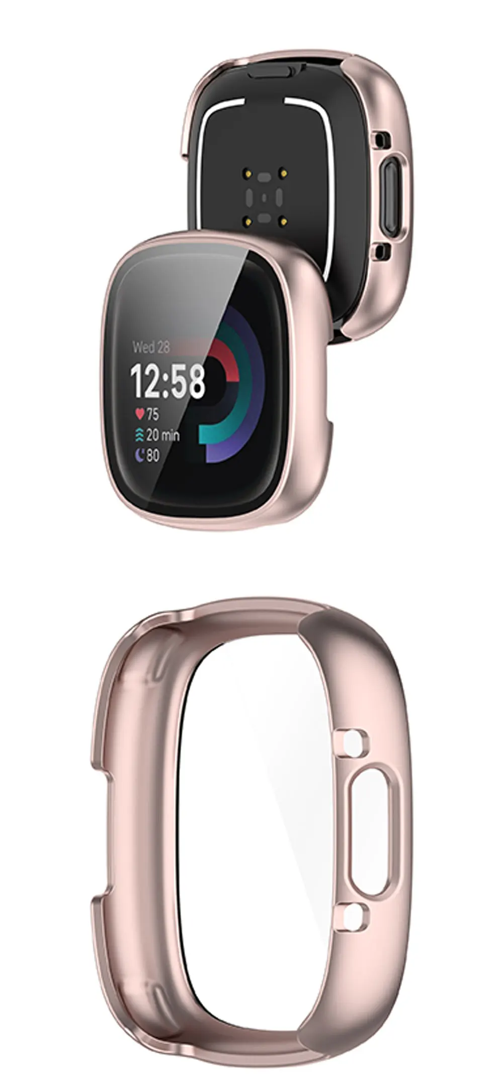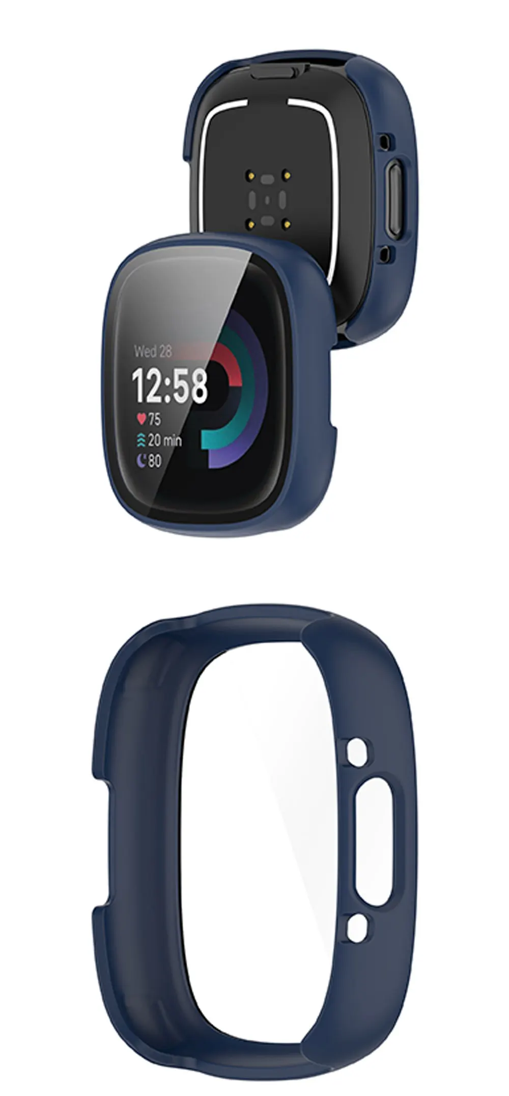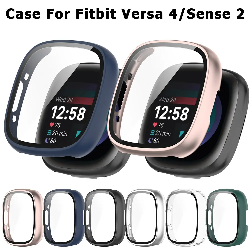 Vidrio templado + funda de PC para Fitbit Versa 4, parachoques integral, cubierta protectora antiarañazos, Protector de pantalla Fitbit Sense2