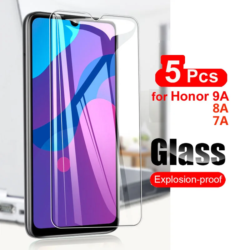 Comprar Vidrio templado para Huawei Honor 9A 9C 9X Pro 8A 8C 8X 7A 7X, película protectora de pantalla, vidrio antiarañazos, Protector de teléfono transparente 10H, 5 unidades