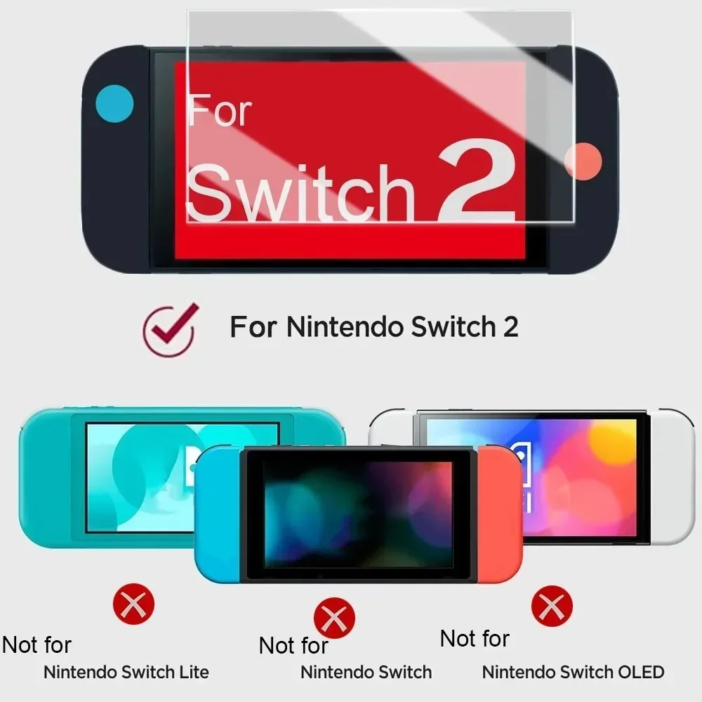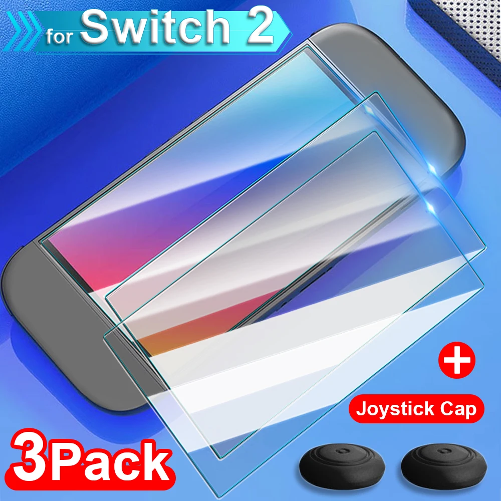 Comprar Vidrio templado Premium 9H para Nintendo Switch 2 Protector de pantalla con 2 tapas de Joystick para consola Switch 2 películas antiarañazos HD