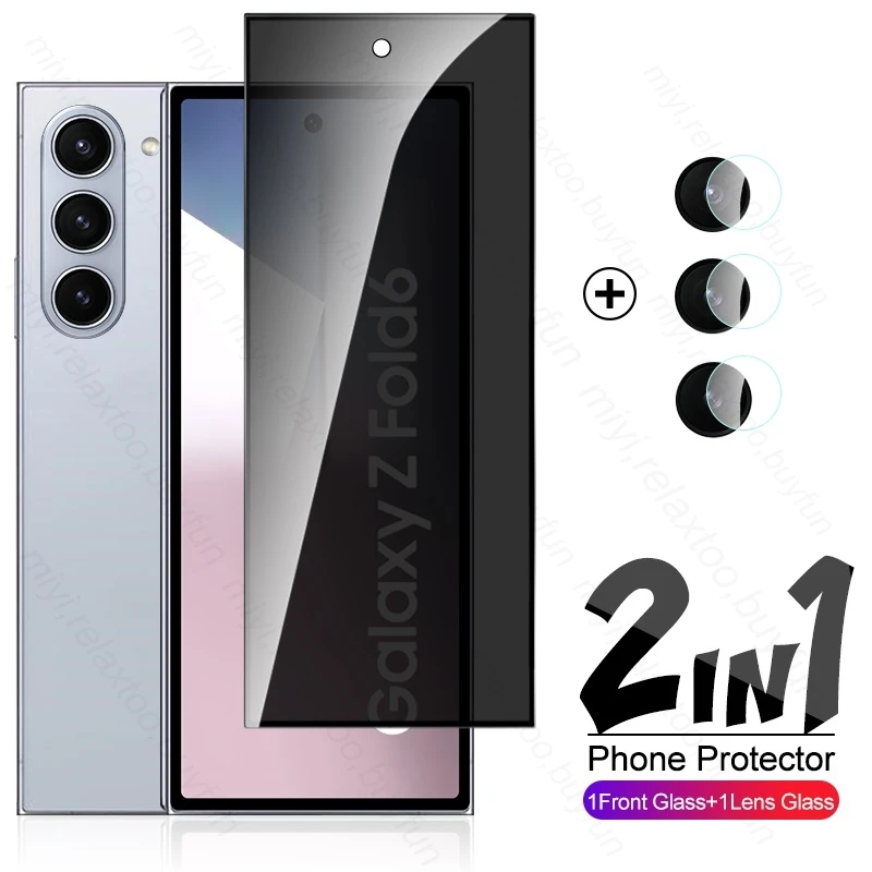 Vidrio templado de privacidad 2 en 1 para Samsung Galaxy Z Fold6 Sumsung Samung Fold 6 ZFold6 5G 2024 Lente de cámara Protector de pantalla de vidrio