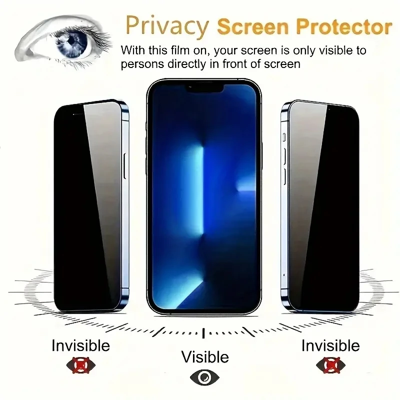 Comprar Vidrio templado de privacidad para iPhone, protectores de pantalla antiespía para iPhone 15, 14, 13, 12, 11 PRO MAX, 15 Plus, X, XR, XS Max, SE, 4 unidades