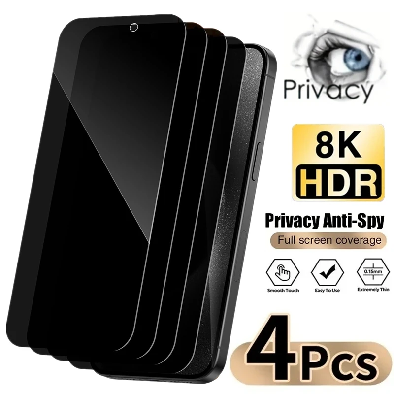 Vidrio templado de privacidad para iPhone, protectores de pantalla antiespía para iPhone 15, 14, 13, 12, 11 PRO MAX, 15 Plus, X, XR, XS Max, SE, 4 unidades
