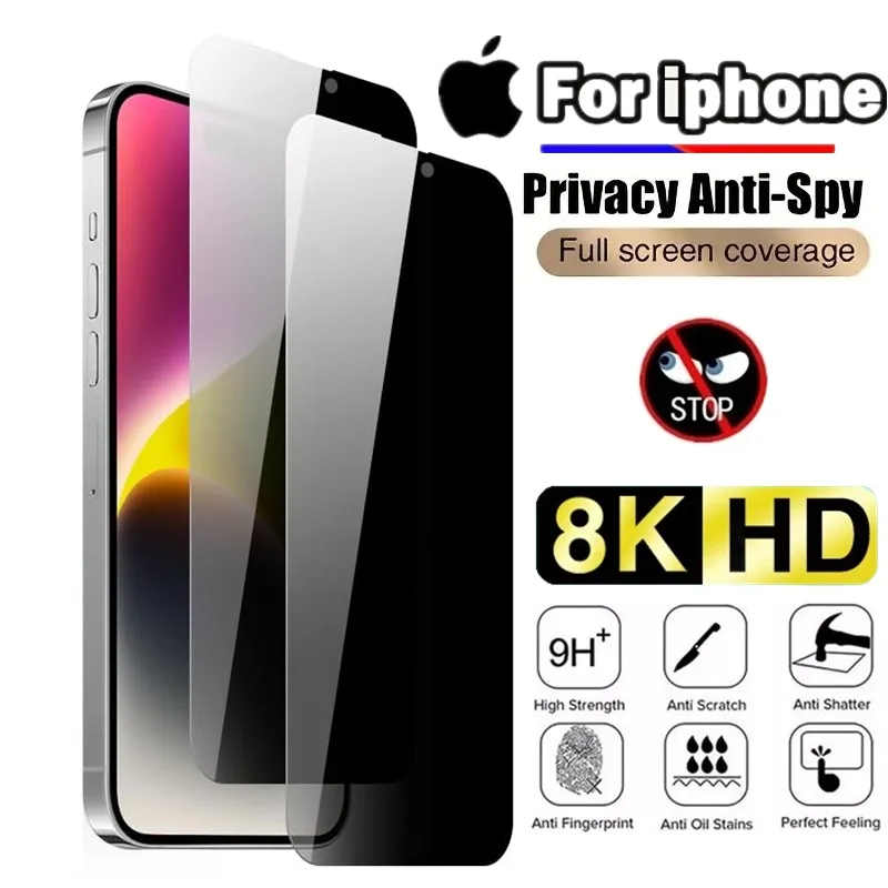 Comprar Vidrio templado de privacidad para iPhone, protectores de pantalla antiespía para iPhone 15, 14, 13, 12, 11 PRO MAX, 15 PLUS, X, XR, XS Max, SE, 2 uds.