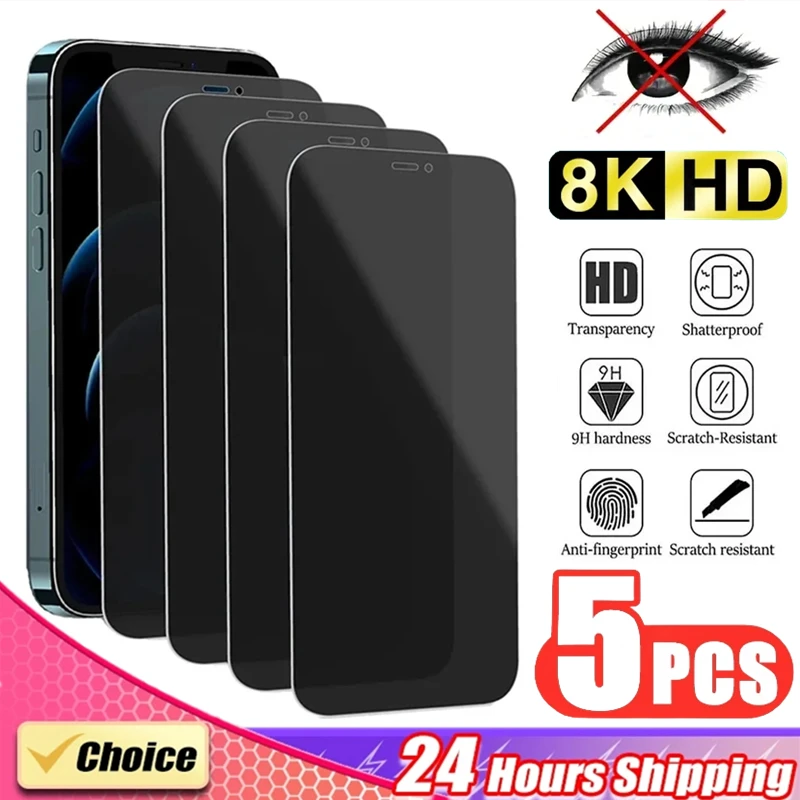 Vidrio templado de privacidad para iPhone, protectores de pantalla antiespía para iPhone 15, 14, 13, 12, 11 PRO MAX, 15 PLUS, X, XR, XS Max, SE, 5 unidades