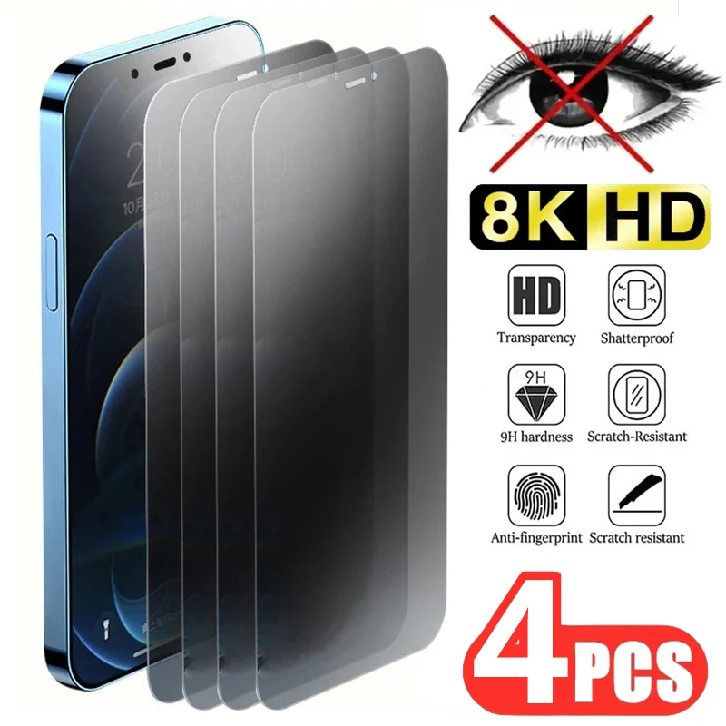 Vidrio templado de privacidad para iPhone, protectores de pantalla antiespía para iPhone 15, 14, 13, 12, 11 PRO MAX, 15 PLUS, X, XR, XS Max, SE, 4 unidades