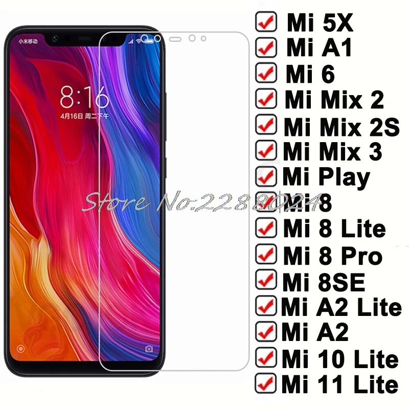 Vidrio templado de protección 9D para Xiaomi Mi A1 6 5X Play A2 Lite 8SE 8 Pro Mi6 10 11 Protector de pantalla Mix 2S 2 3 Mix2 Película de seguridad