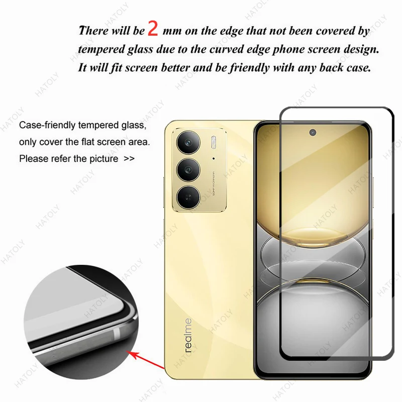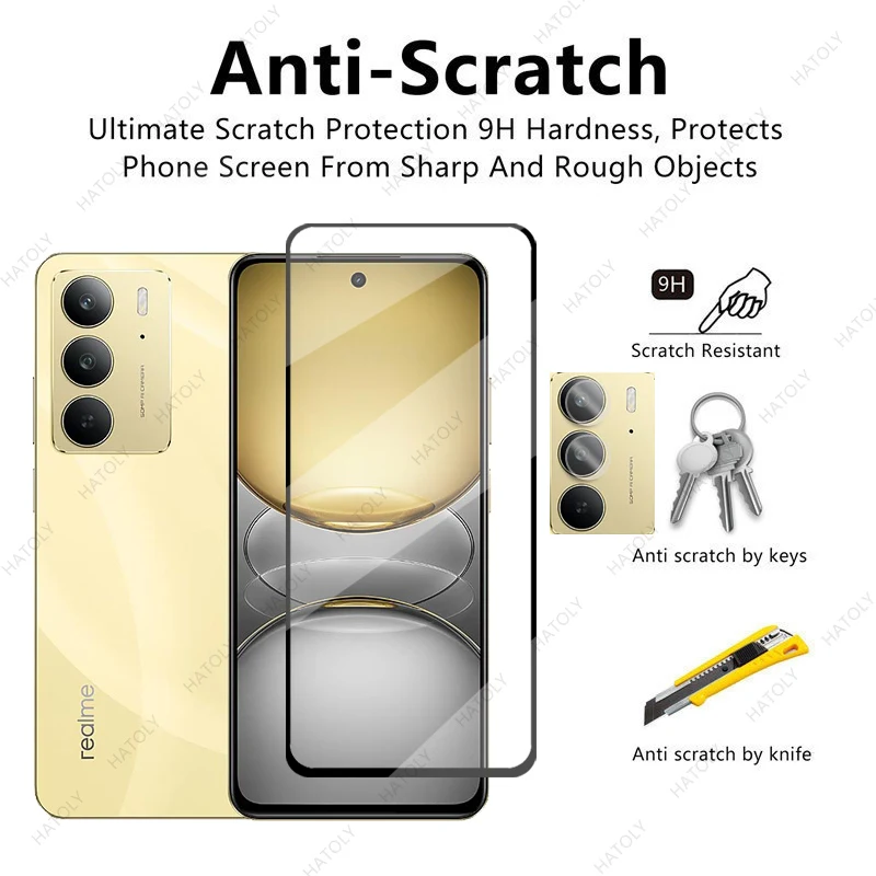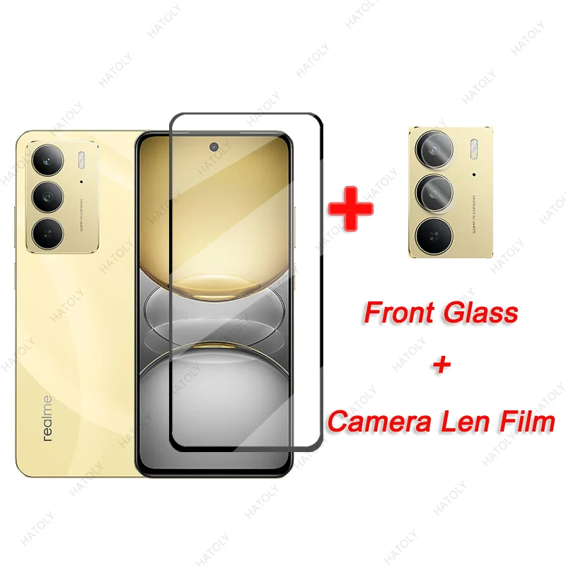 Comprar Vidrio templado para Realme C75 5G, Protector de pantalla con pegamento de cobertura completa para Realme C75, película protectora de borde negro, Protector de lente de cámara