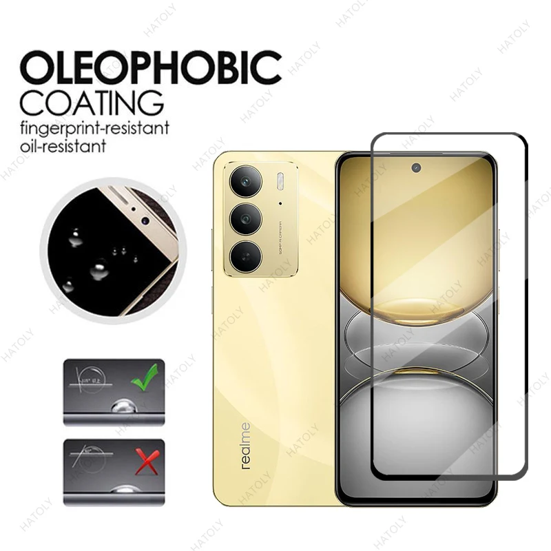 Comprar Vidrio templado para Realme C75 5G, Protector de pantalla con pegamento de cobertura completa para Realme C75, película protectora de borde negro, Protector de lente de cámara