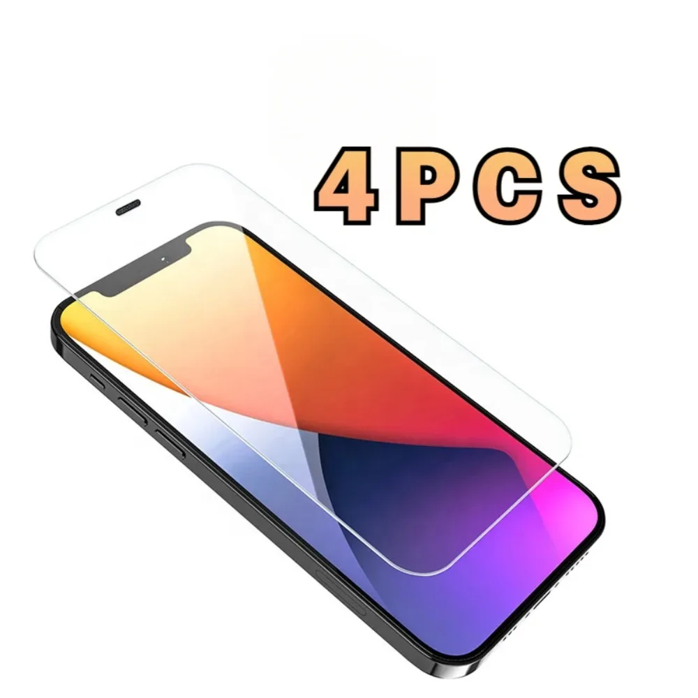 Comprar Vidrio templado transparente para IPhone, Protector de pantalla para IPhone 14, 15 Pro Max, 13, 12 Pro Mini, 11, 7, 8Plus, XR, XS Max, 4 unidades