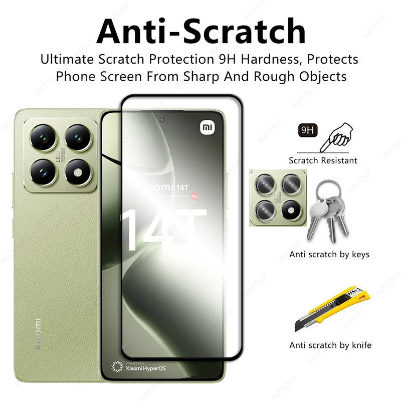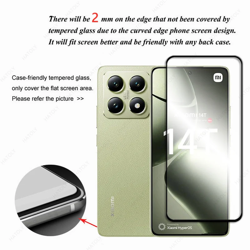 Vidrio templado para Xiaomi 14T, Protector de pantalla para Xiaomi 14T 5G, película protectora con borde negro, Protector de cámara para Xiaomi 14T Pro