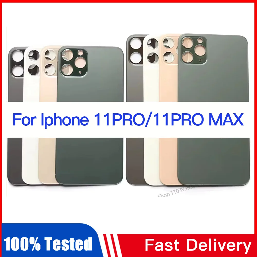 Vidrio trasero para iPhone 11 Pro MAX, Panel de cubierta de batería, carcasa de puerta trasera, piezas de reparación, agujero de cámara grande para iPhone 11Pro