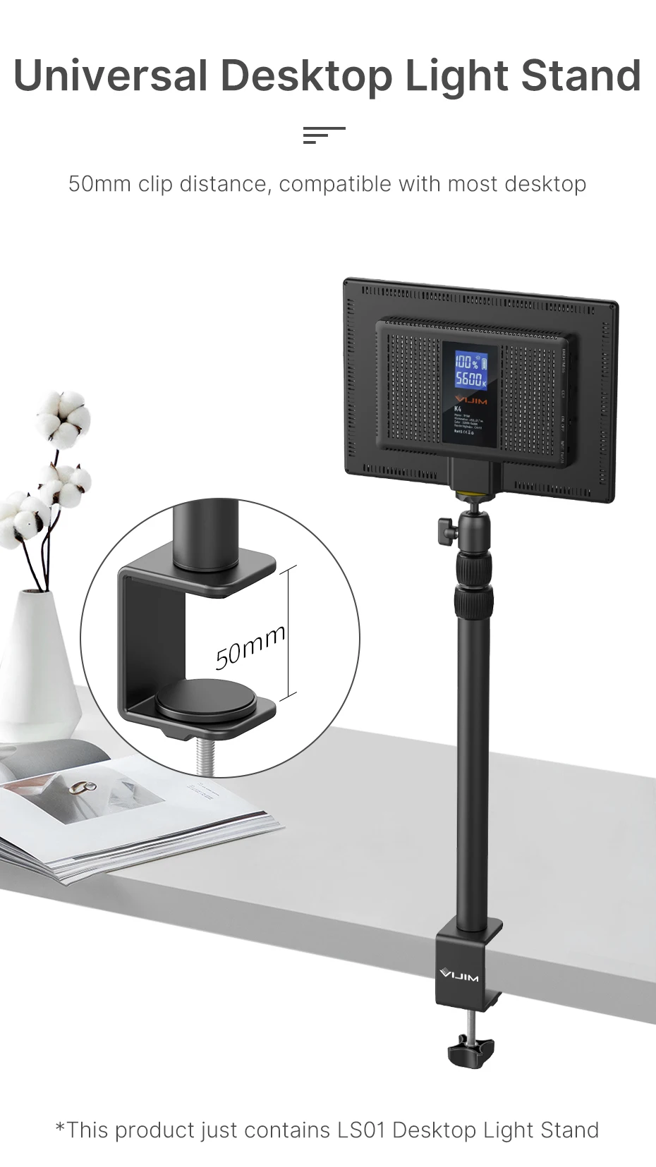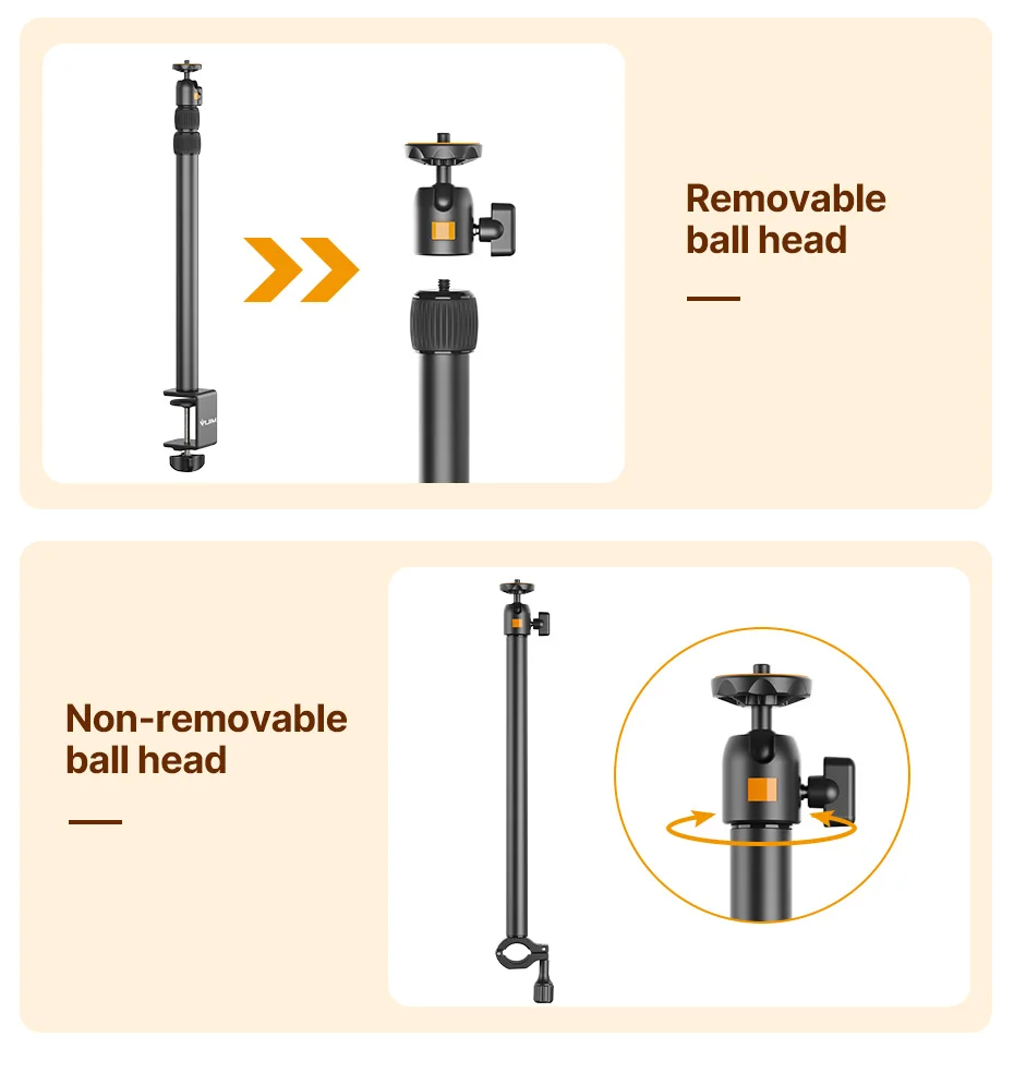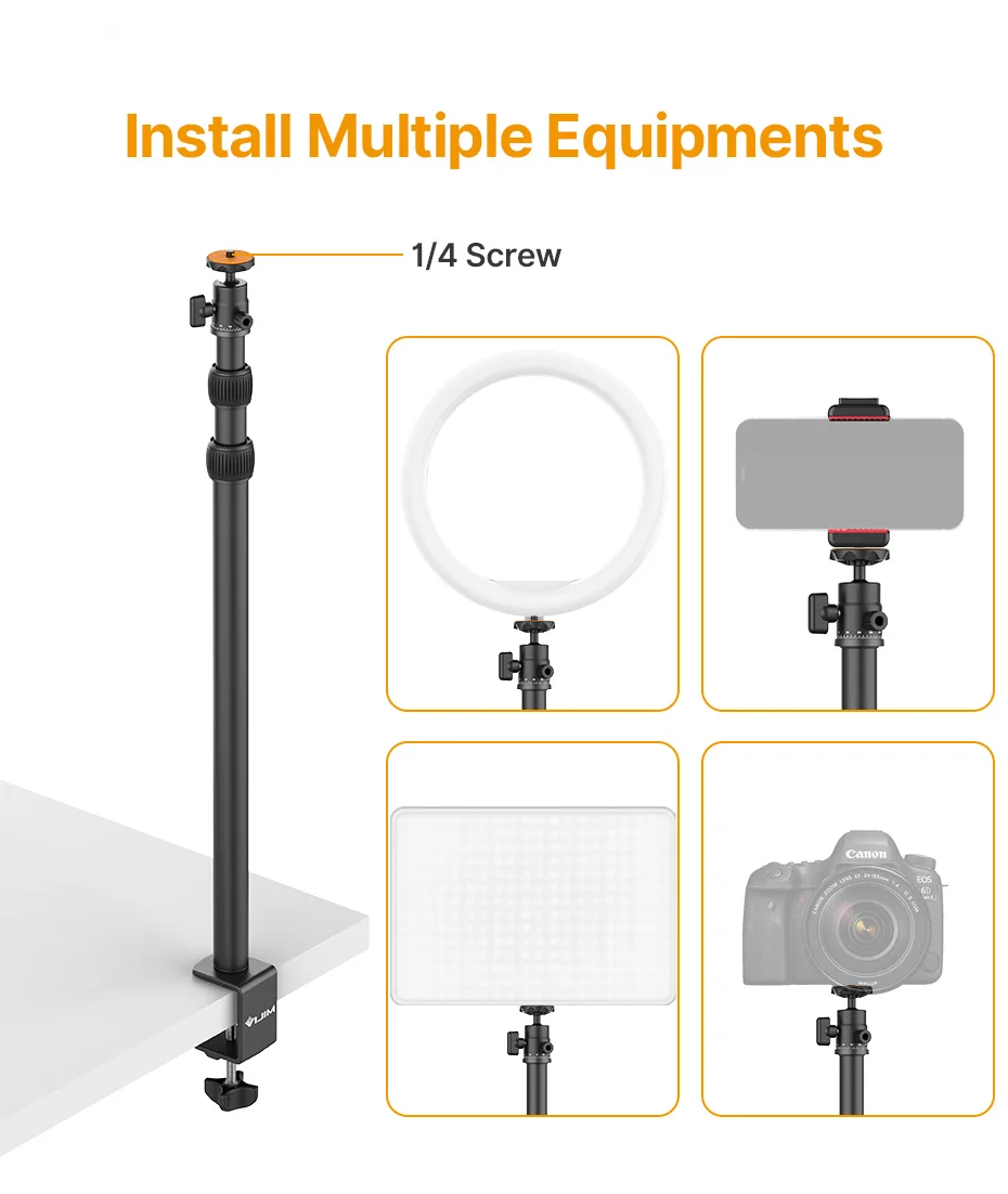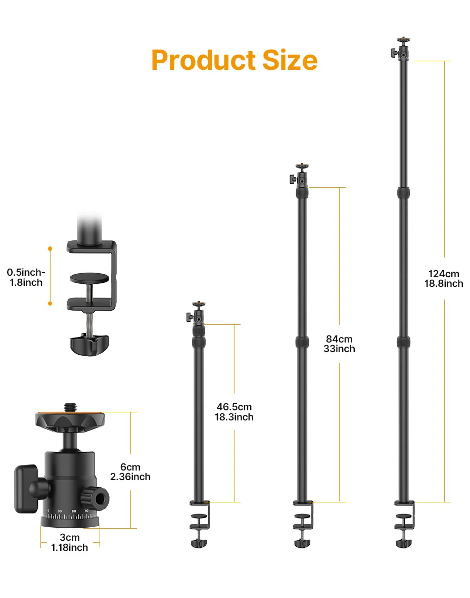 El soporte es muy resistente y bien construido. Puse mi Sony a6500 en él y fue súper estable. Sin embargo, es importante notar que la abrazadera que se conecta a la mesa no tiene una abertura de 5 cm, como se indica en el anuncio. En realidad, mide aproximadamente 4.5 cm, lo que me obligó a hacer una muesca en el madera con una sierra de romper.