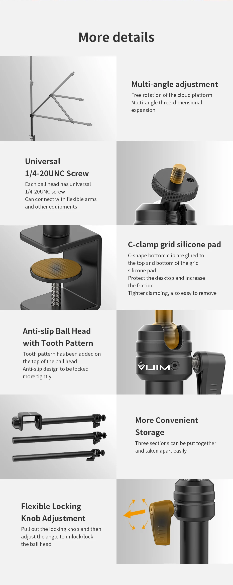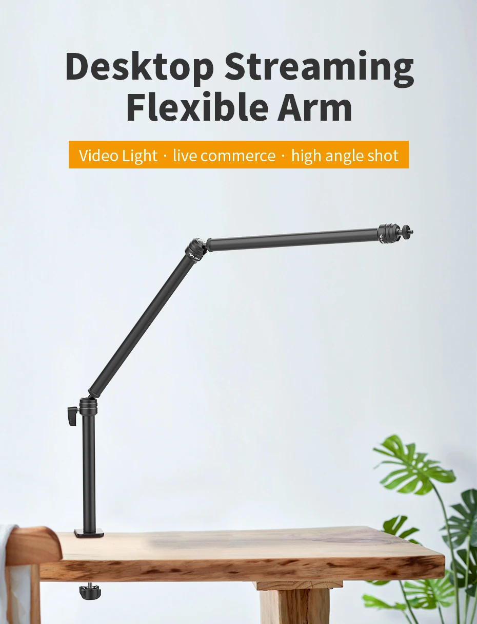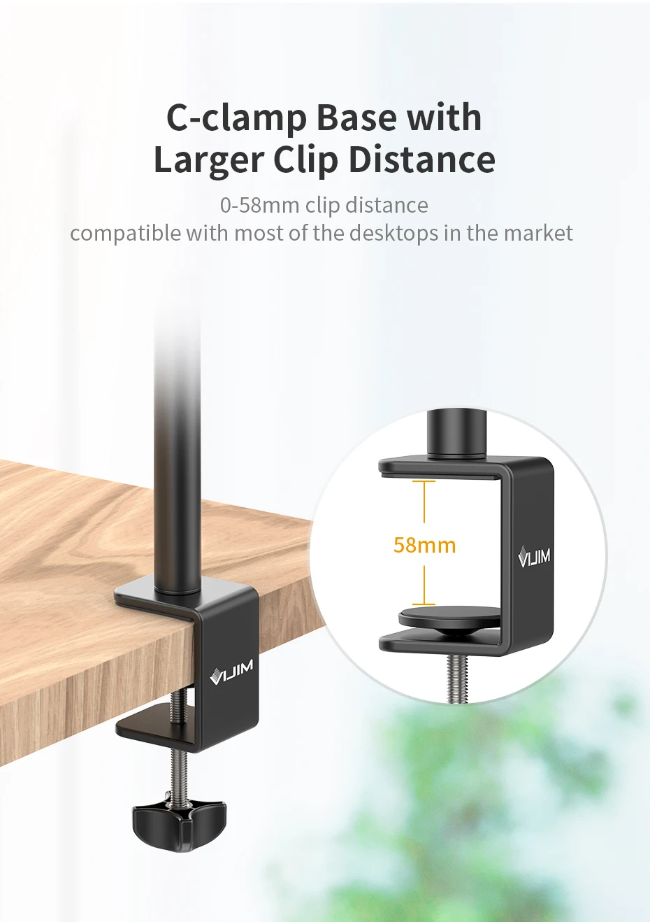 VIJIM LS08 Soporte de cámara de luz con abrazadera en C de escritorio con brazo de extensión de tres secciones