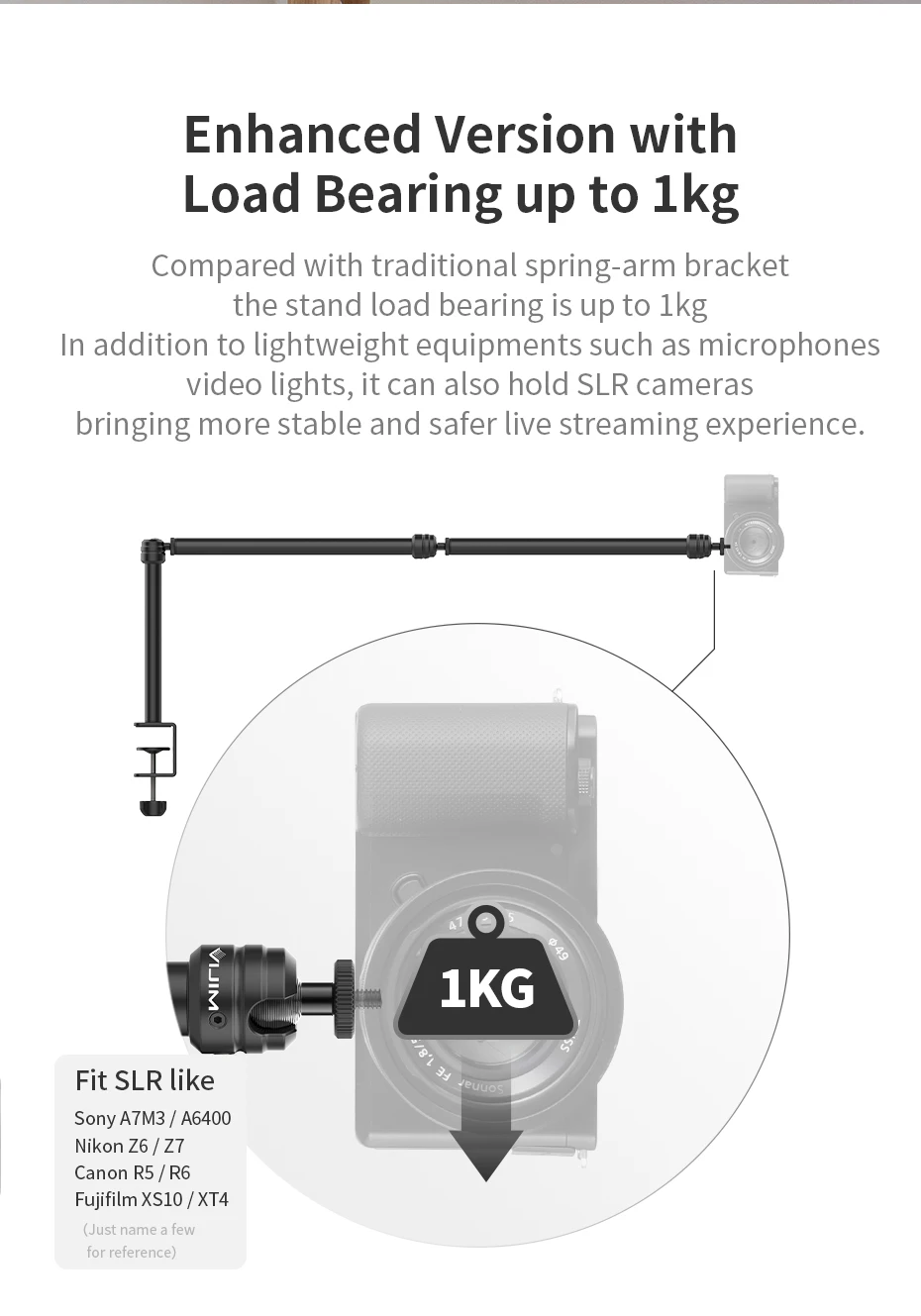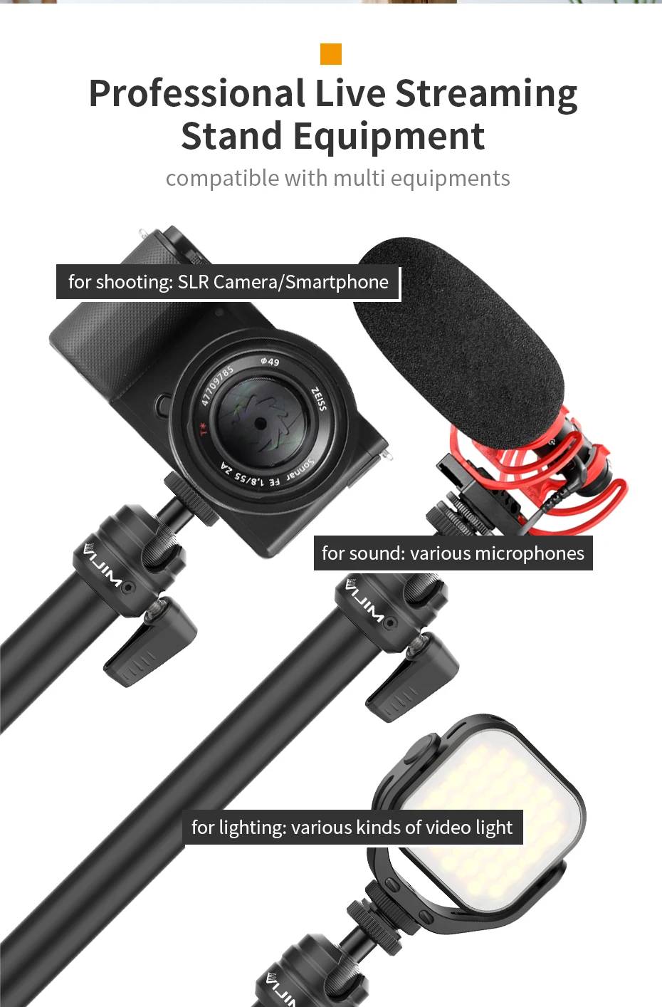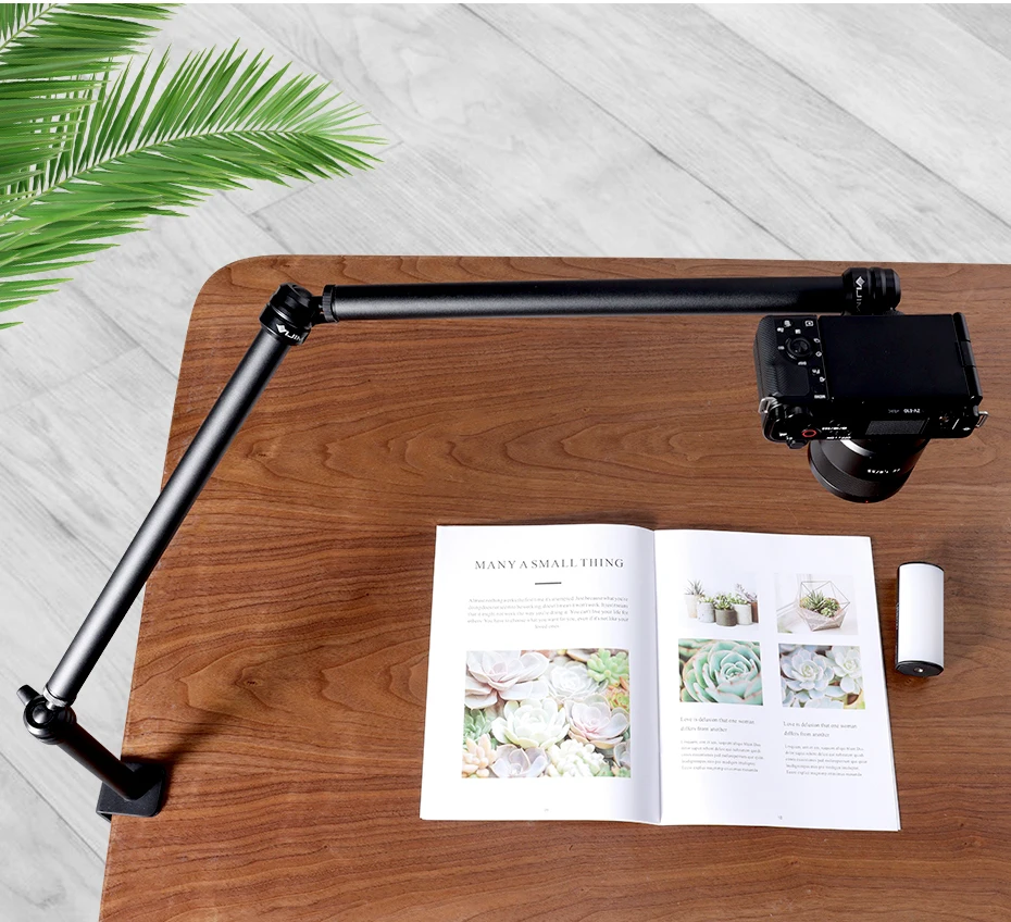VIJIM LS08 Soporte de cámara de luz con abrazadera en C de escritorio con brazo de extensión de tres secciones