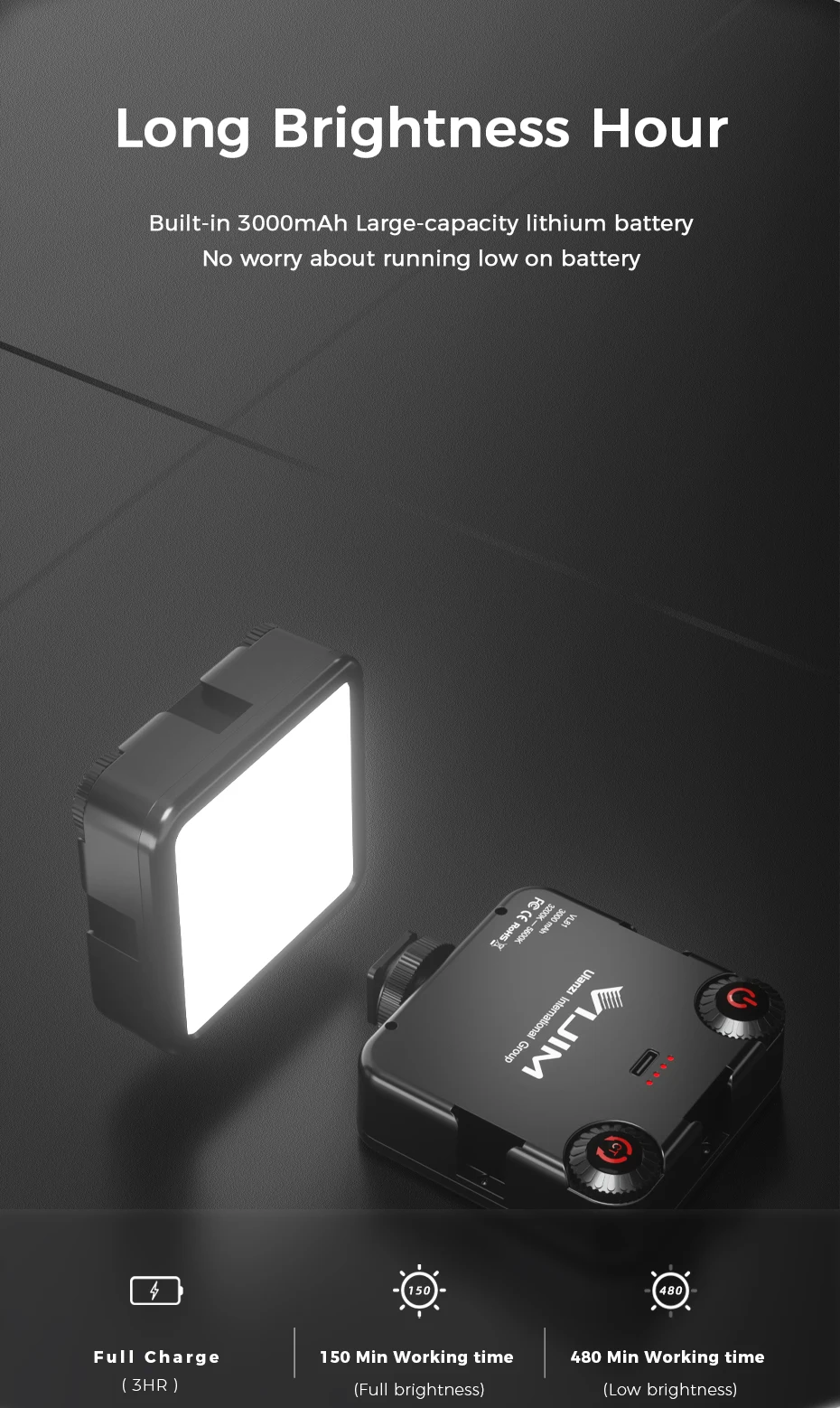 Ajuste de luz amarilla y blanca de 3200k-5600k.La atenuación más rápida cambió rápidamente con diferentes escenas.