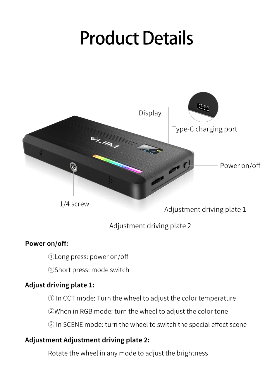 VIJIM-luz LED para vídeo VL196/VL120, RGB, 2500-9000K, regulable, 12W, luz de relleno con difusor, 3000mAh, para cámara de estudio de fotografía